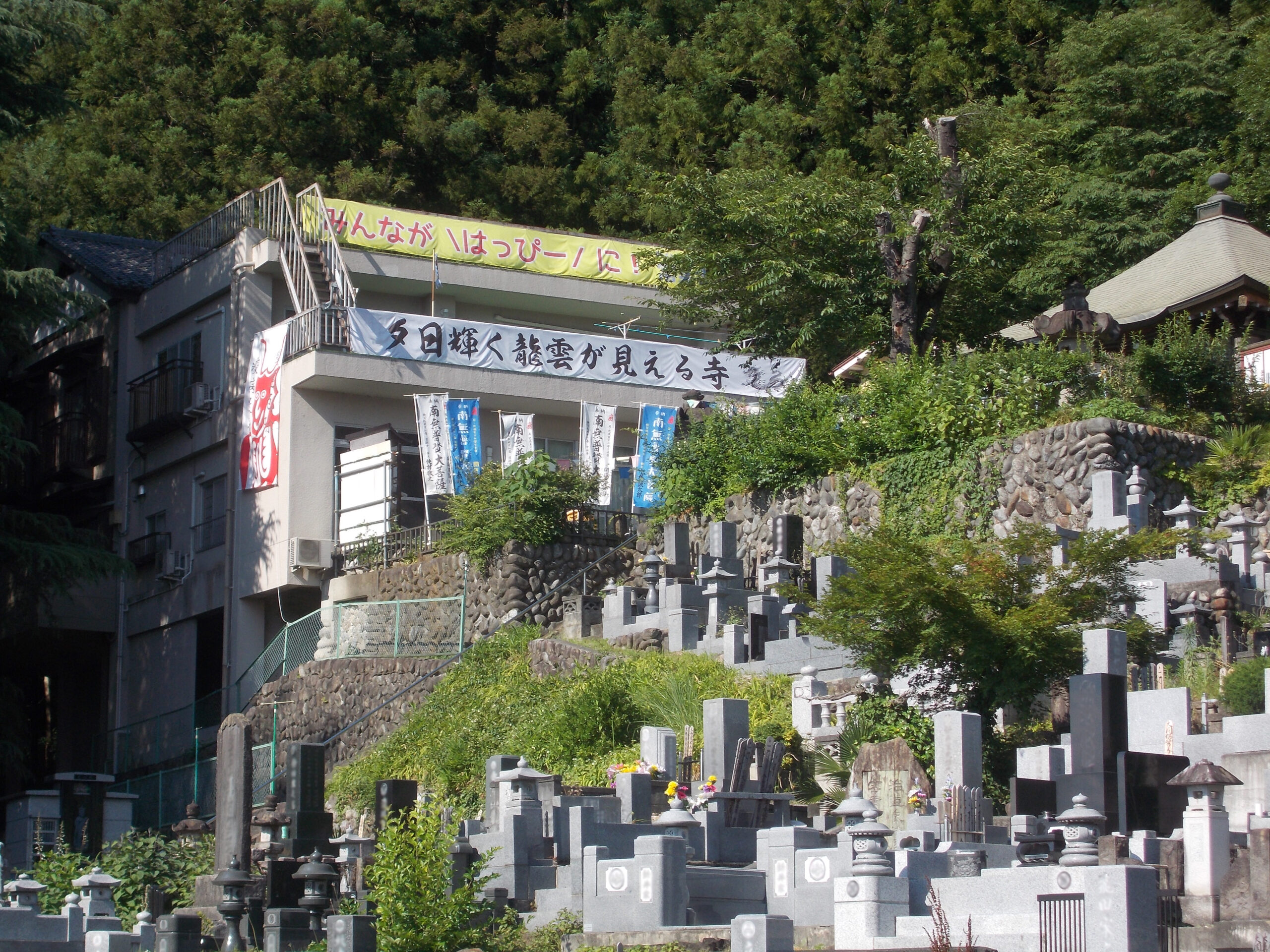 「常楽寺」を訪れて、まず最初に目に飛び込んでくるのが「みんながはっぴーに!」と書かれた黄色い横断幕。
