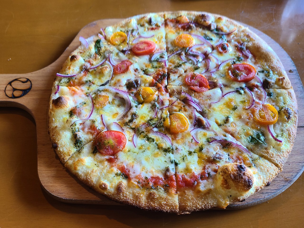 「ビラパワ」のピザは香ばしいうえに彩りが鮮やかで、目の前に並ぶと食欲をそそられてしまう。