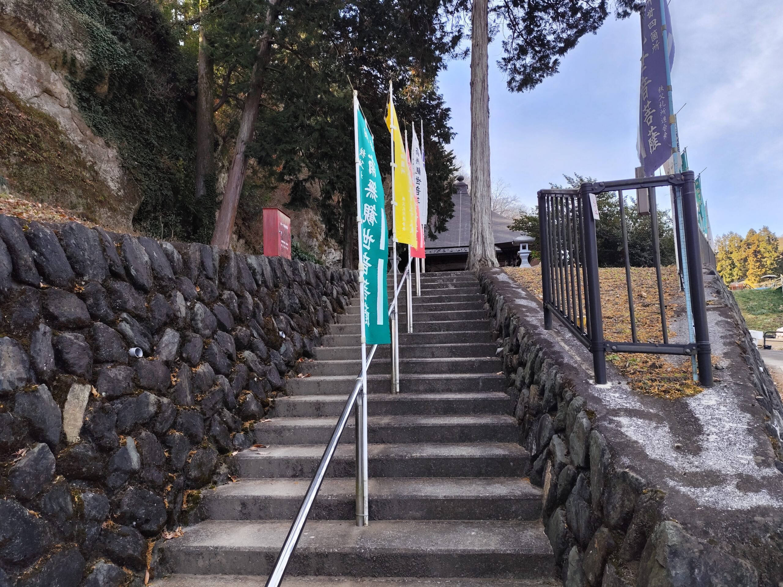 この石段の先にあるのが観音堂だ。仁王門から観音堂の石段までは歩いて1分ほどで、道も1本なので迷うことはない。