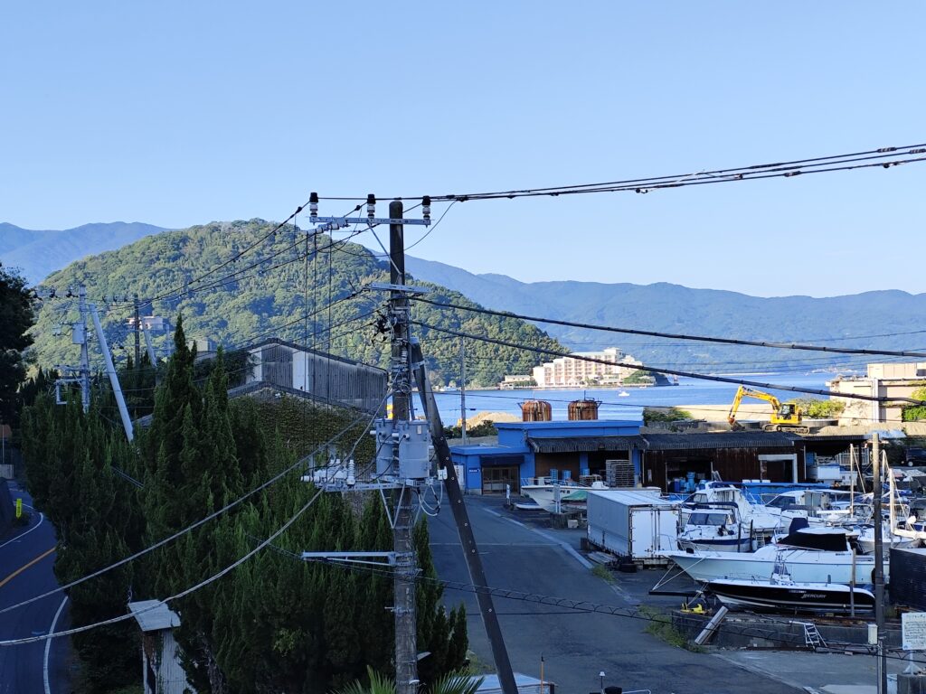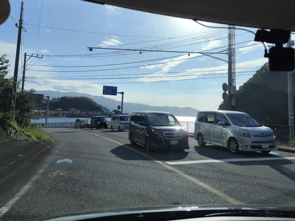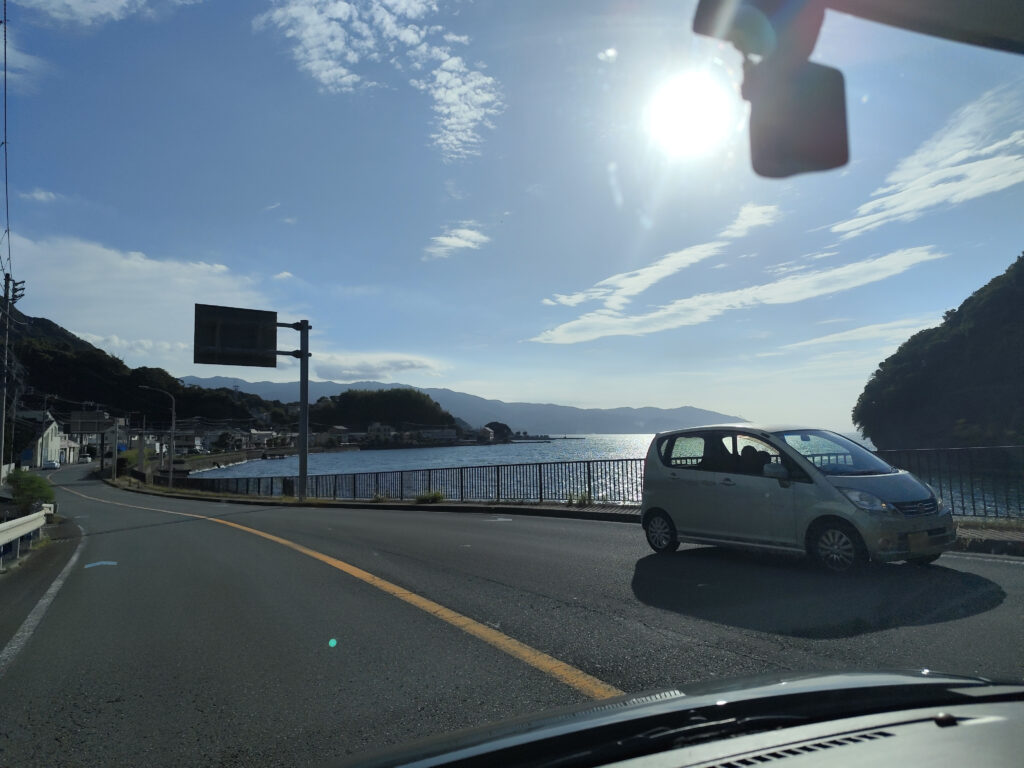 トンネルを抜け、国道414号(静岡県道134号 静浦港韮山停車場線)から静岡県道17号 沼津土肥線に入ったところで、目の前にいきなり江浦湾が!