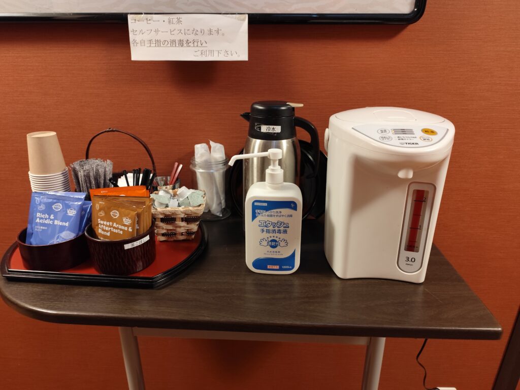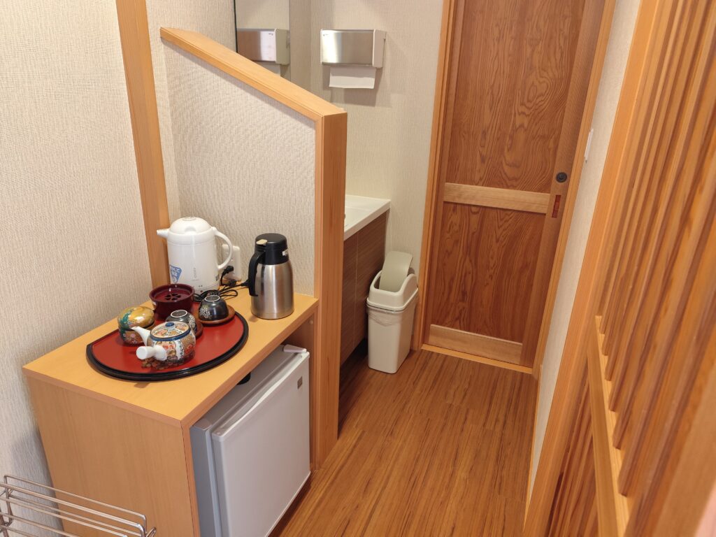 「三代目あだち」は料理がおいしいことはもちろんだが、チェックイン時には部屋まで荷物を運んでいただいたり、部屋に冷水を持ってきていただいたりと細やかな気遣いも印象的。また、2階にはセルフの紅茶やコーヒーも用意されていた。
