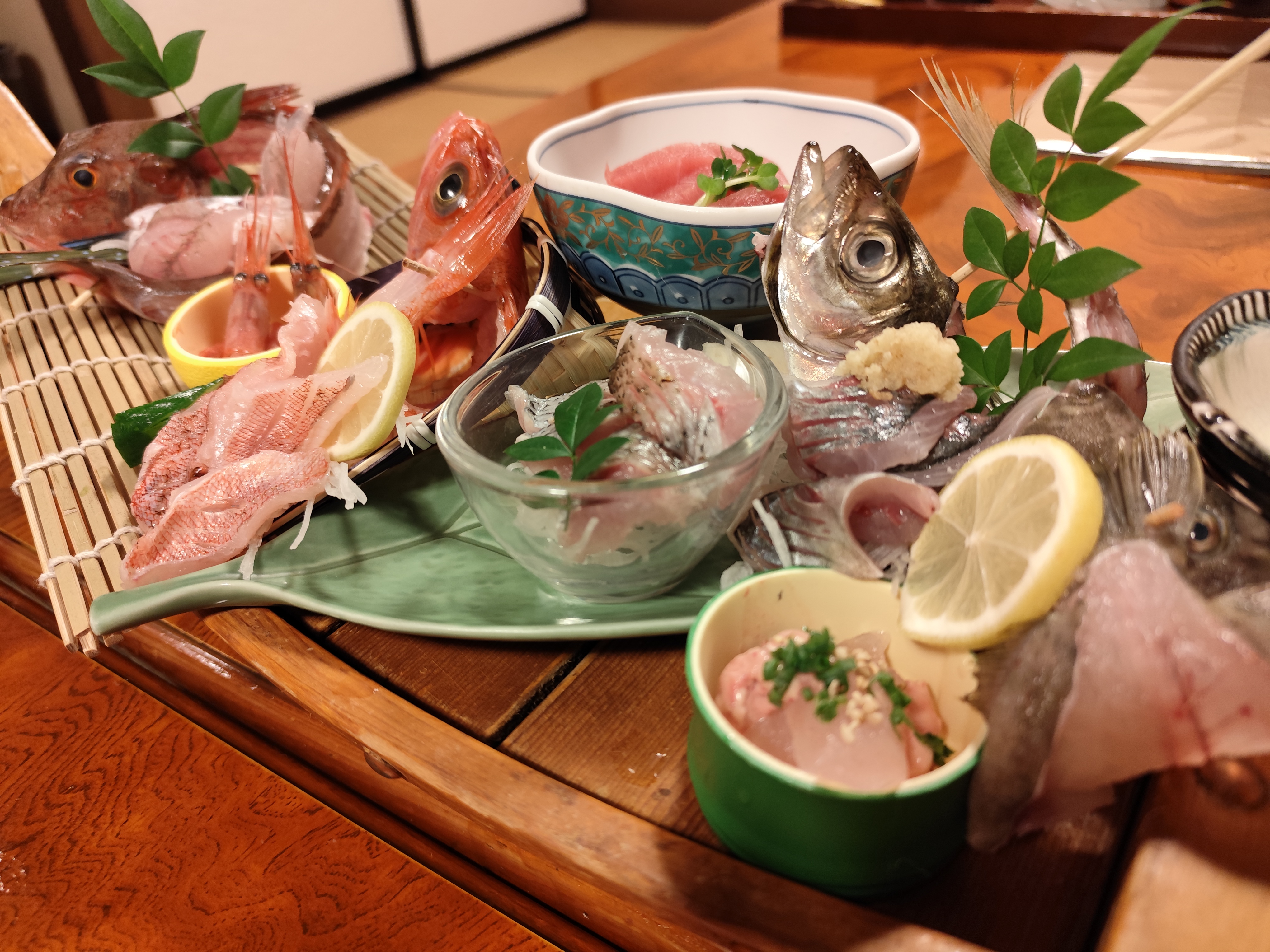 箸を一度つけたら、あとはKとともに「おいしいねぇ!」とお互いに口にしながら、思い思いに新鮮なお刺身をいただいていった。ただ、ワタシはどれがどの魚なのかよくわからない人なので、こういうときに「特に〇〇〇がよかった!」言えないのがもどかしい。