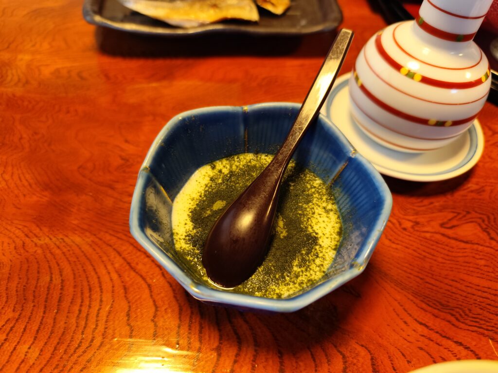 ぱっと見たときには海苔がかかった何かかと思ったが、試しにひと口いただいてプリンだと判明。プリンの甘さと抹茶の苦みが意外とマッチしていておいしかった。