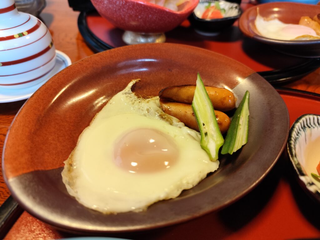 朝食は夕食ほどではないものの、かなり豪勢。さすがにKは食べきれず、ワタシが少しヘルプした。
