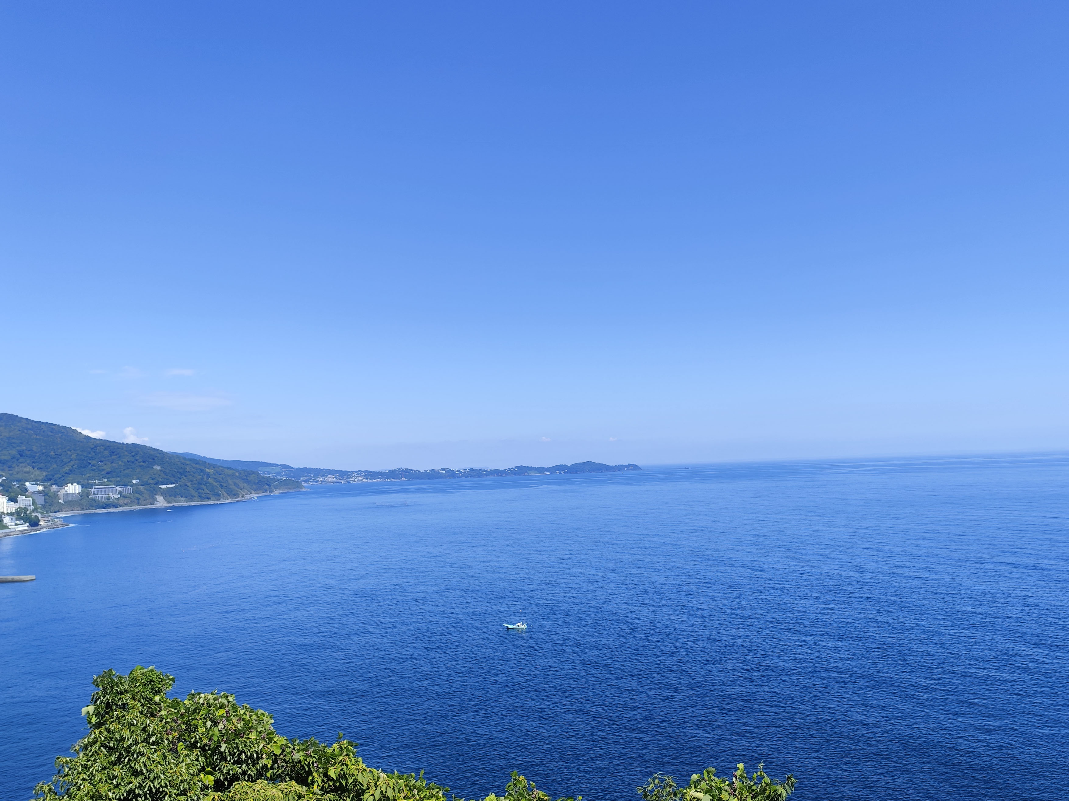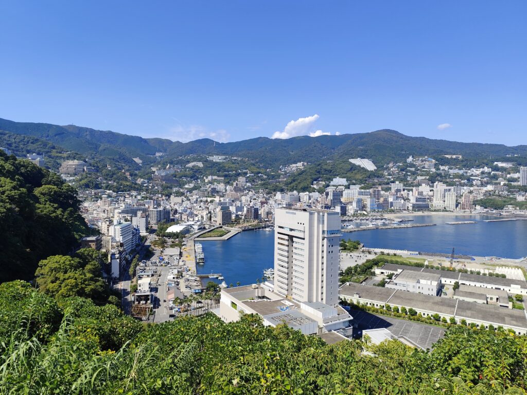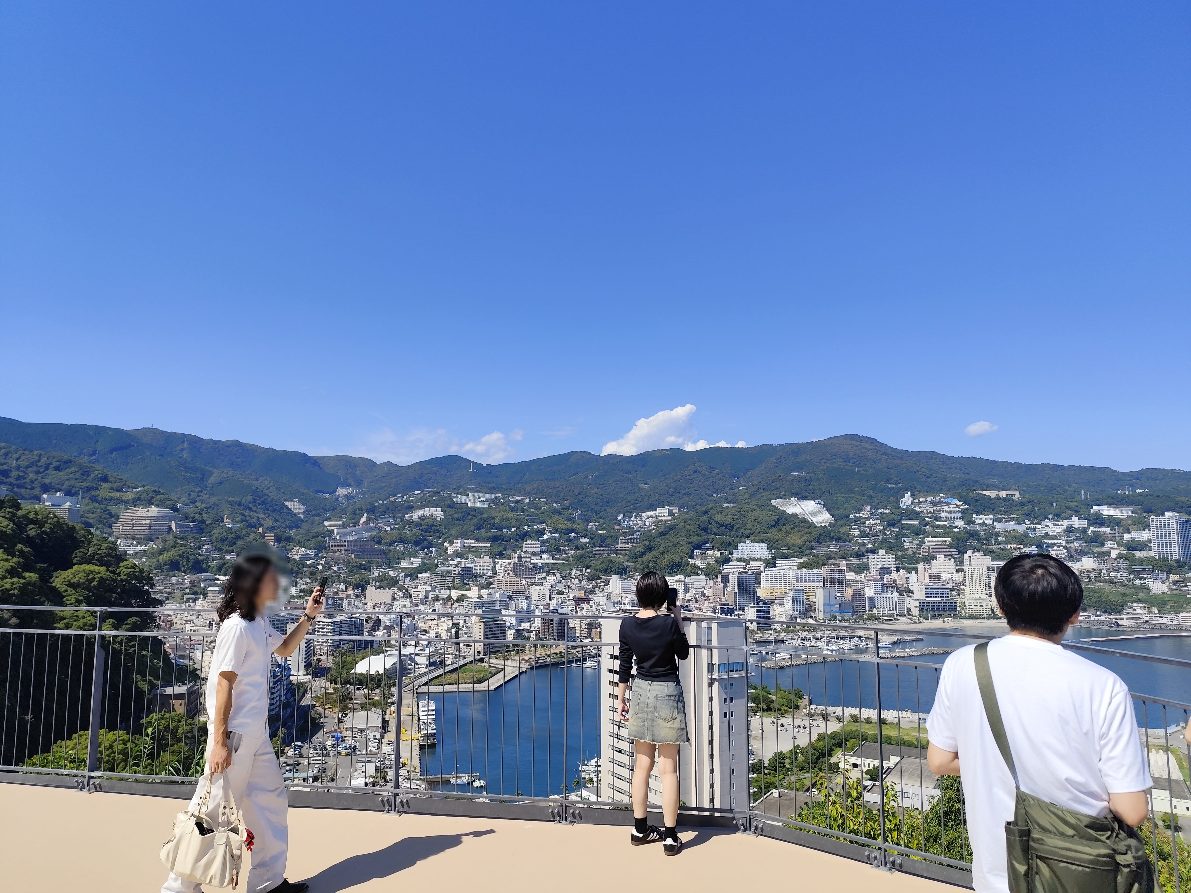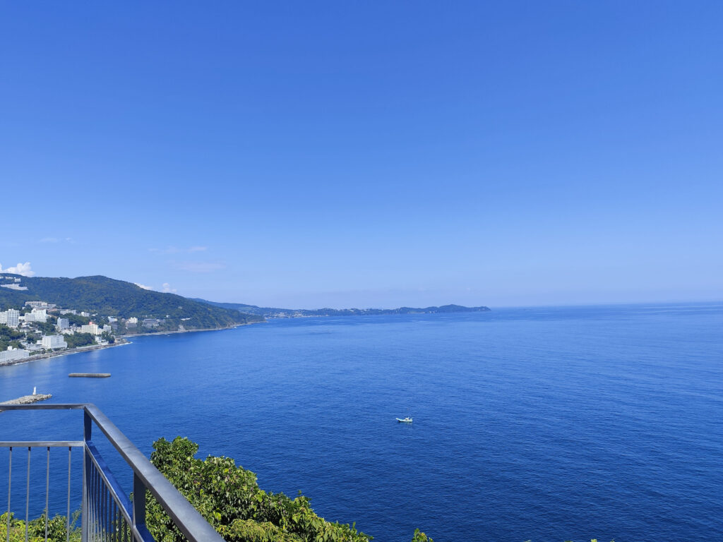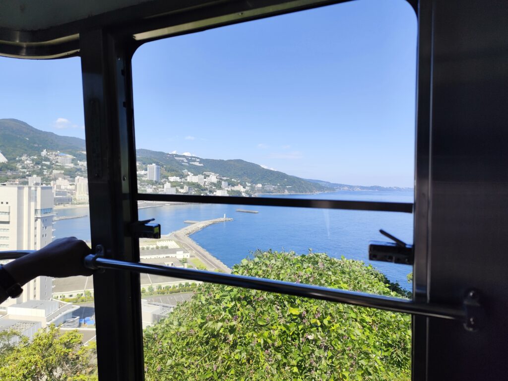 「アタミロープウェイ」山頂駅を出ると海を見渡せる絶景が広がっている。