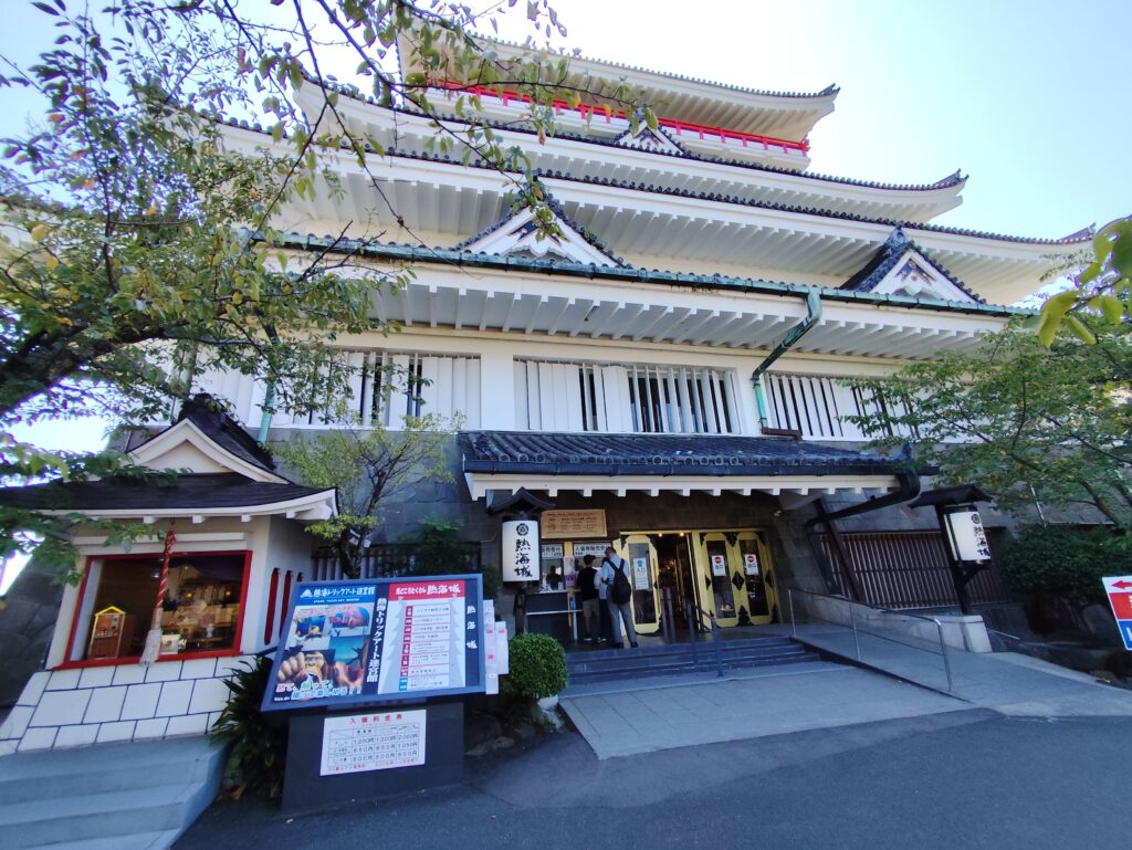 その後、ワタシたちは「熱海秘宝館」の入り口まで来たものの、すぐ近くに「熱海城」があるとのことなので、ひとまずそちらへ行ってみることに。車での移動中に見えていたお城に興味があったし、せっかく近くまで来ていたので。