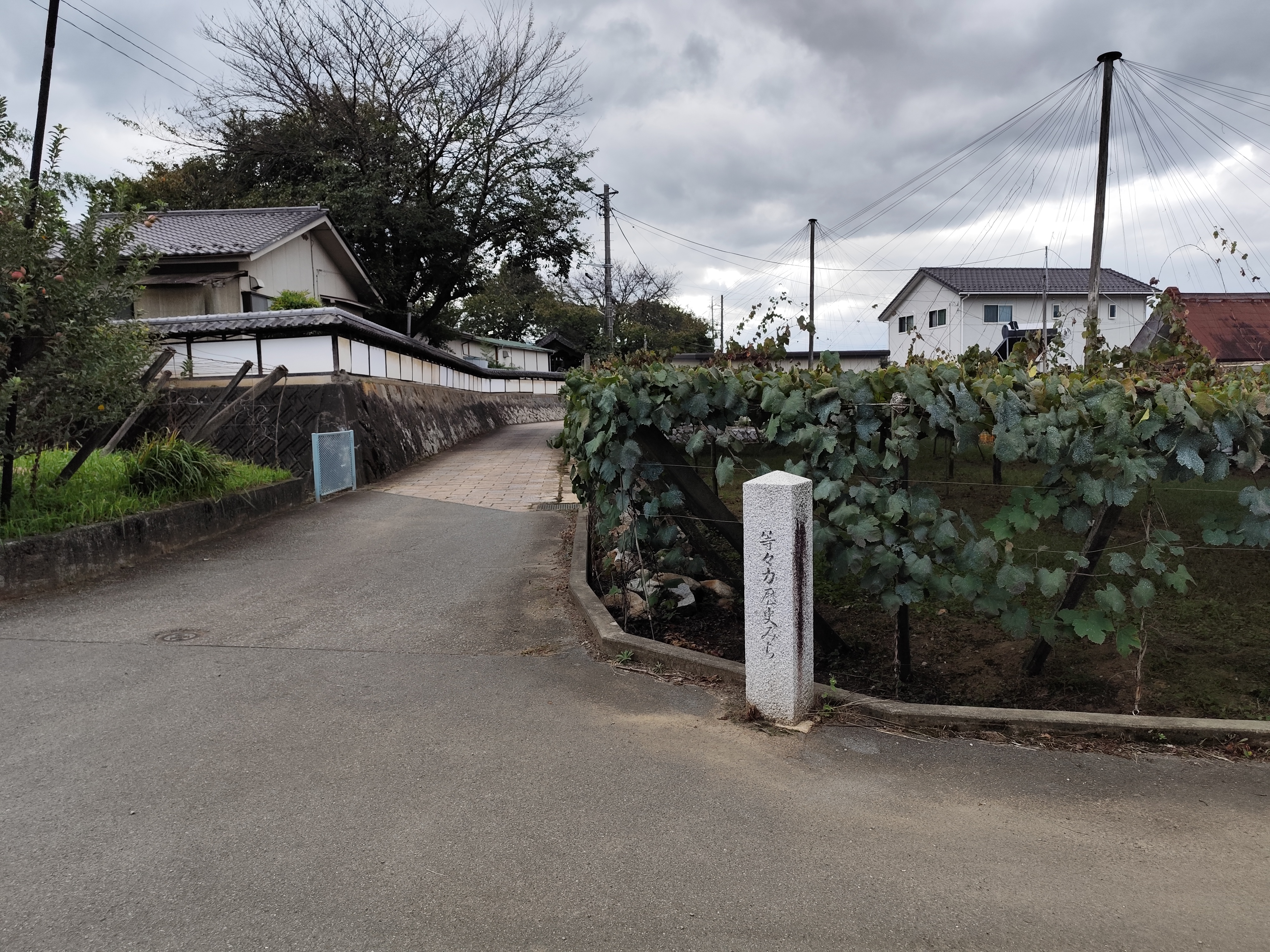 「等々力寺町」には勝沼ぶどう郷駅から歩いて40分ほどで到着できる。しかし、マップアプリの某先生の目的地を設定する際に間違えたうえ、さんざん寄り道をした結果、「等々力寺町」に着くまで1時間30分ほどかかってしまった。