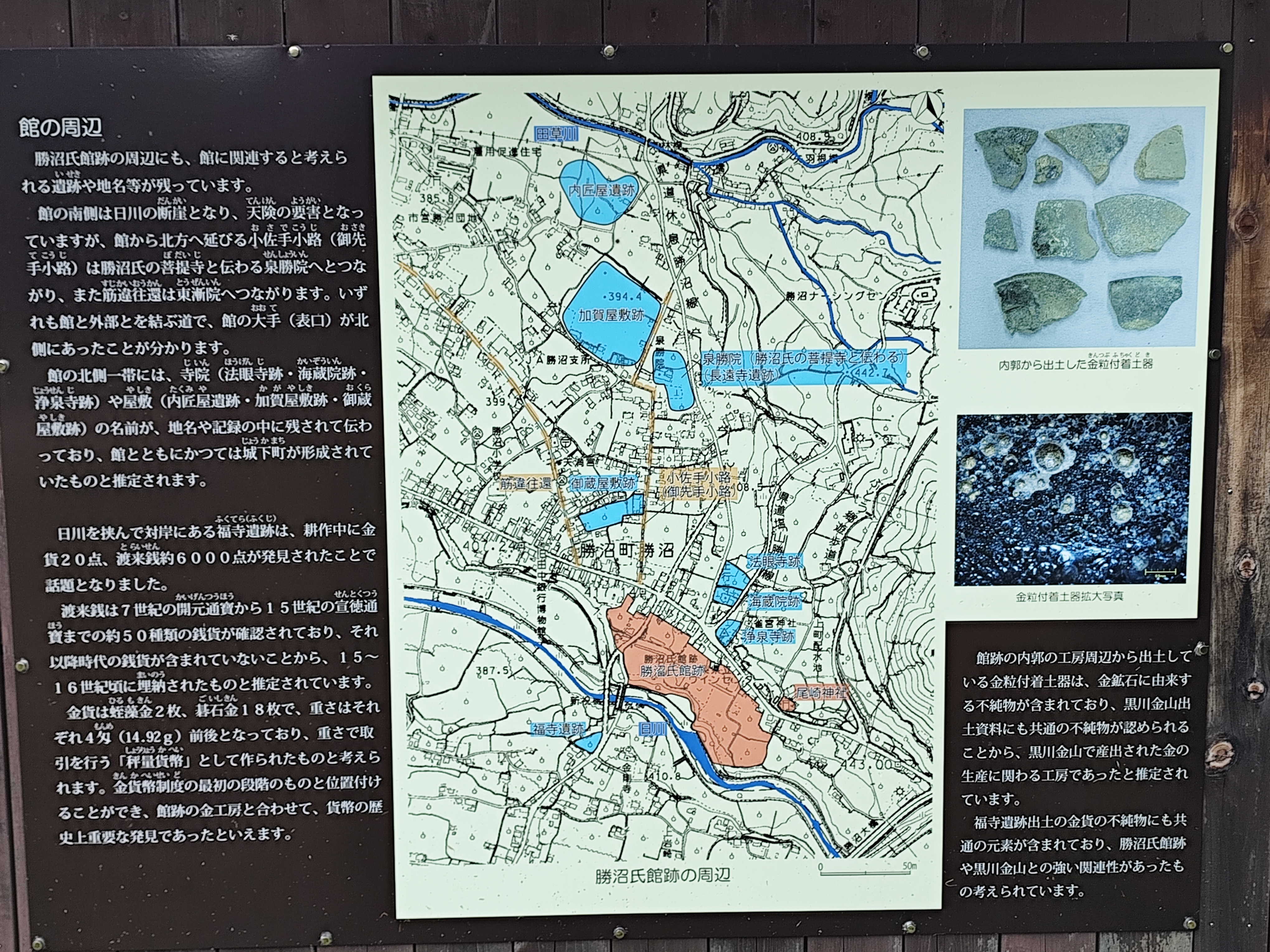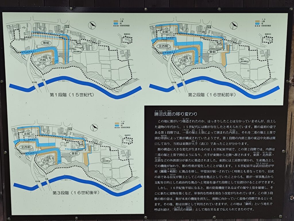 もしかしたら裏側というのは記憶違いかもしれないが、案内板の充実ぶりに驚くしかない。この時点でワタシは何も知らずに「勝沼氏館跡」にやってきたことが、なんだか申し訳なくなってしまった。