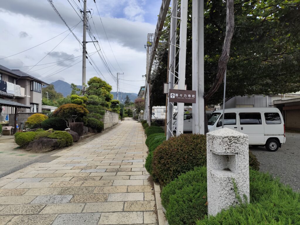 「等々力寺町」の看板の先には石畳が敷かれた道が続いていて、お寺と思しき建物も見える。このときワタシは「やっと着いた…」とひと安心して、ちょっと力が抜けてしまった。
