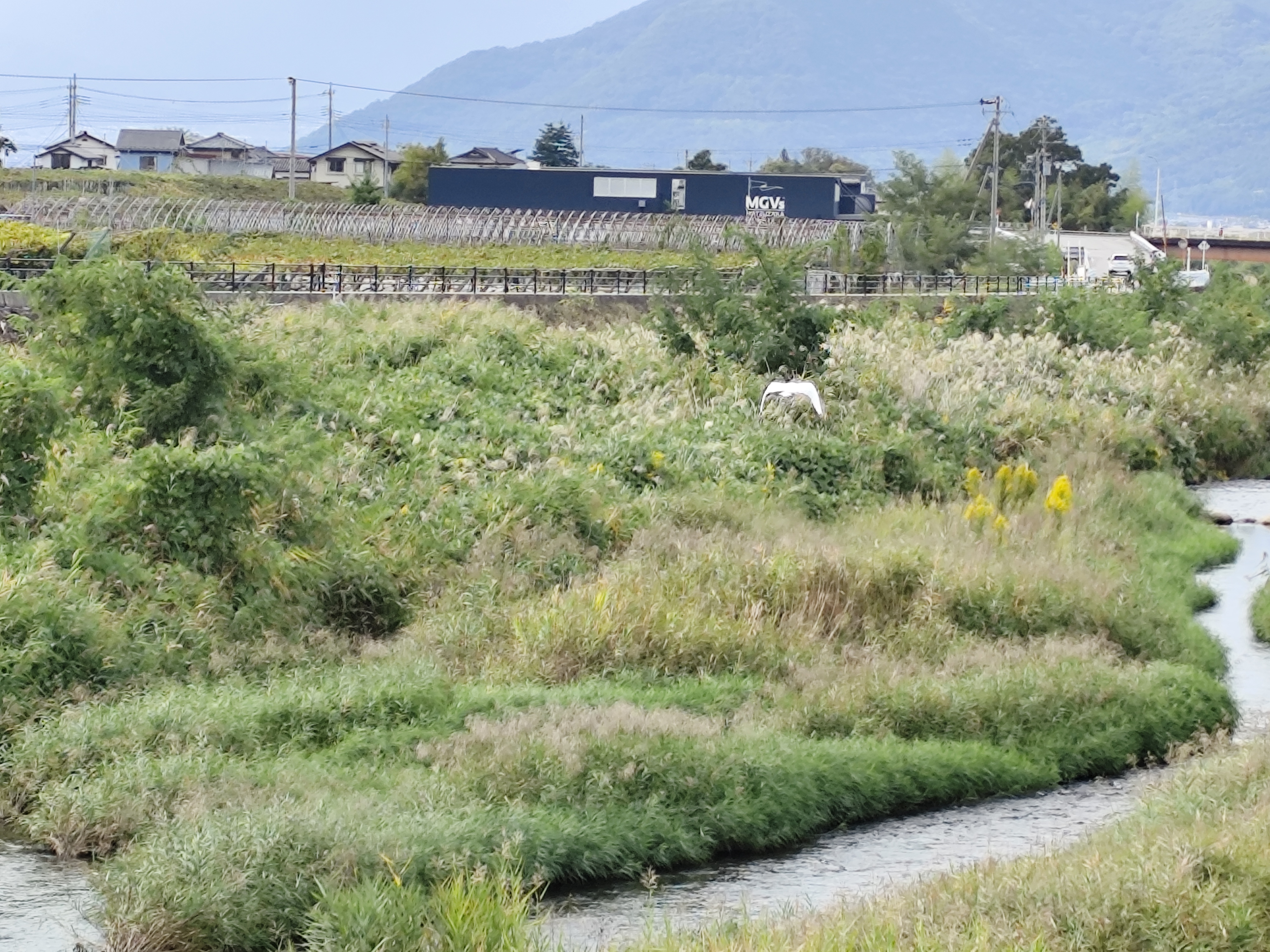 途中、サギと思しき白くて大きな鳥が日川に立っていたのだが、ワタシがカメラを向けた途端に飛び立ってしまう。なんというタイミングの悪さよ…。