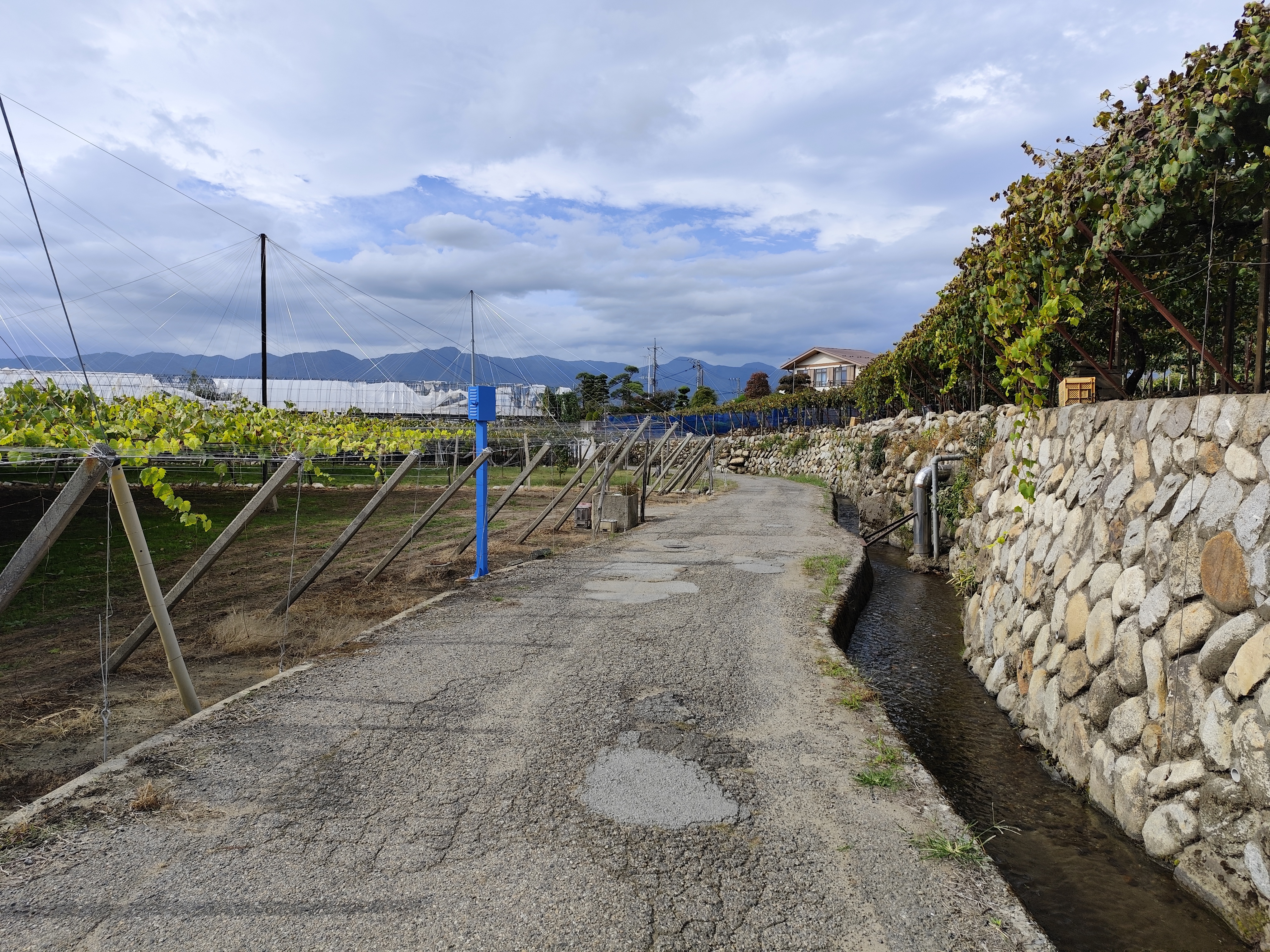 ワタシが進む道は相変わらず細かったが、このあたりはぶどう園が多く、中にはぶどう狩りを目的としたツアーバスが入ってくることもあったので、けっこう油断ができなかった。