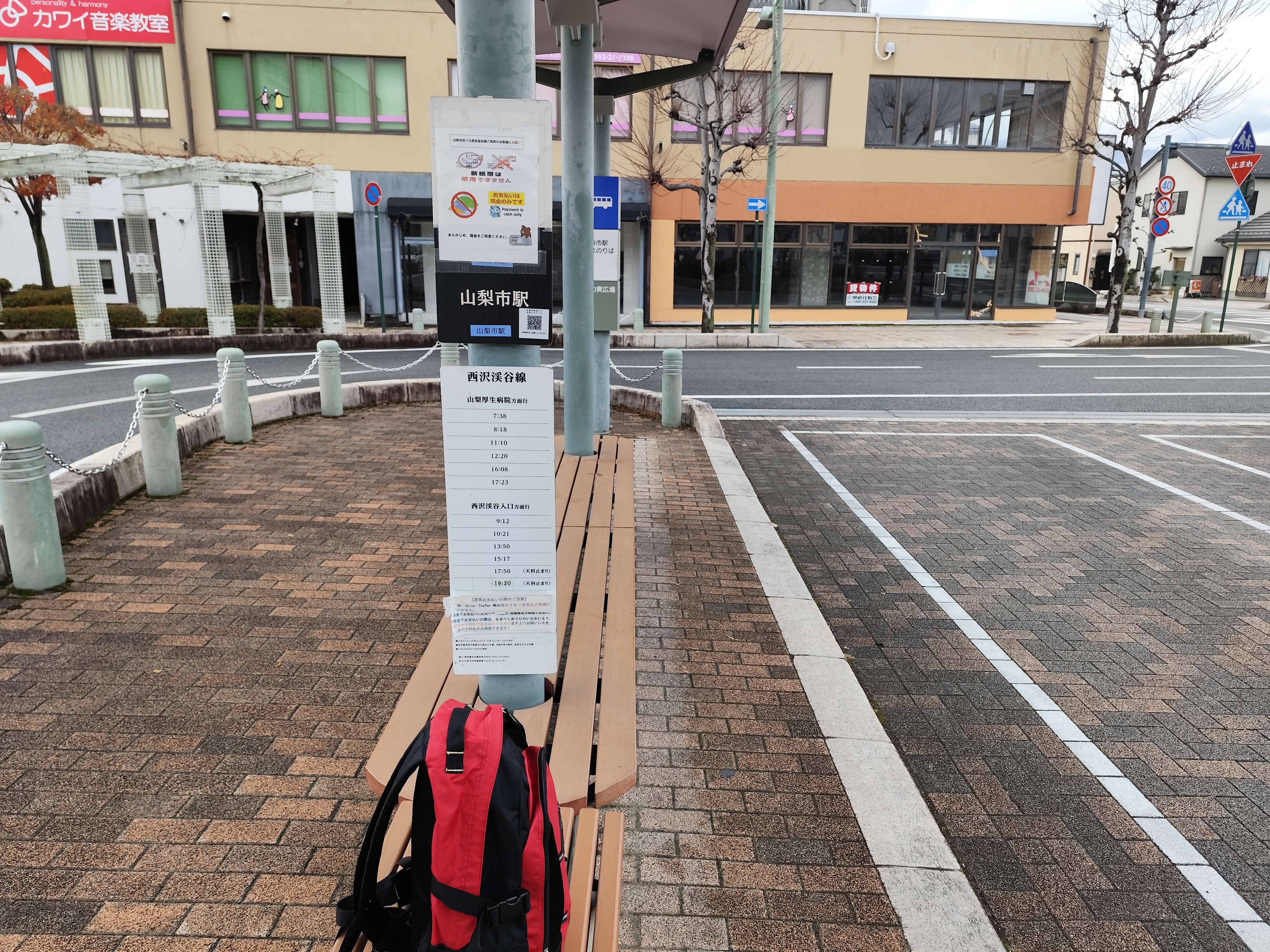 なぜ、これほど用心深い行動を取ったのかというと、単純に西沢渓谷方面へ向かう山梨市営バスの本数が少なく、乗り遅れるととんでもないことになるからだ。