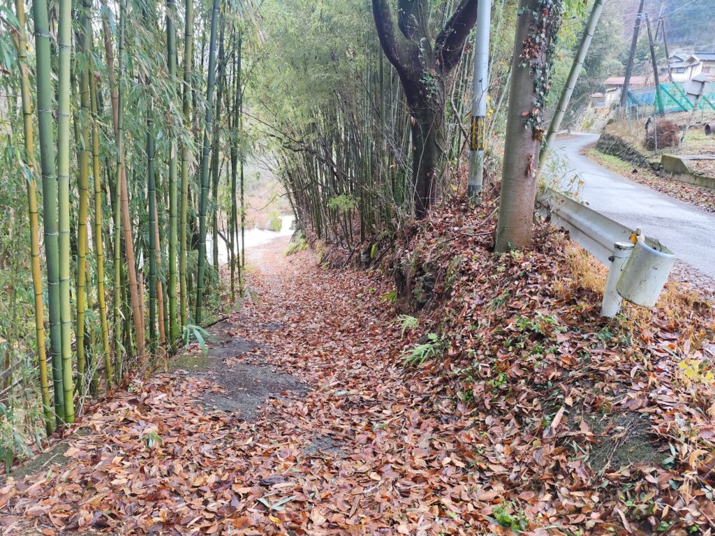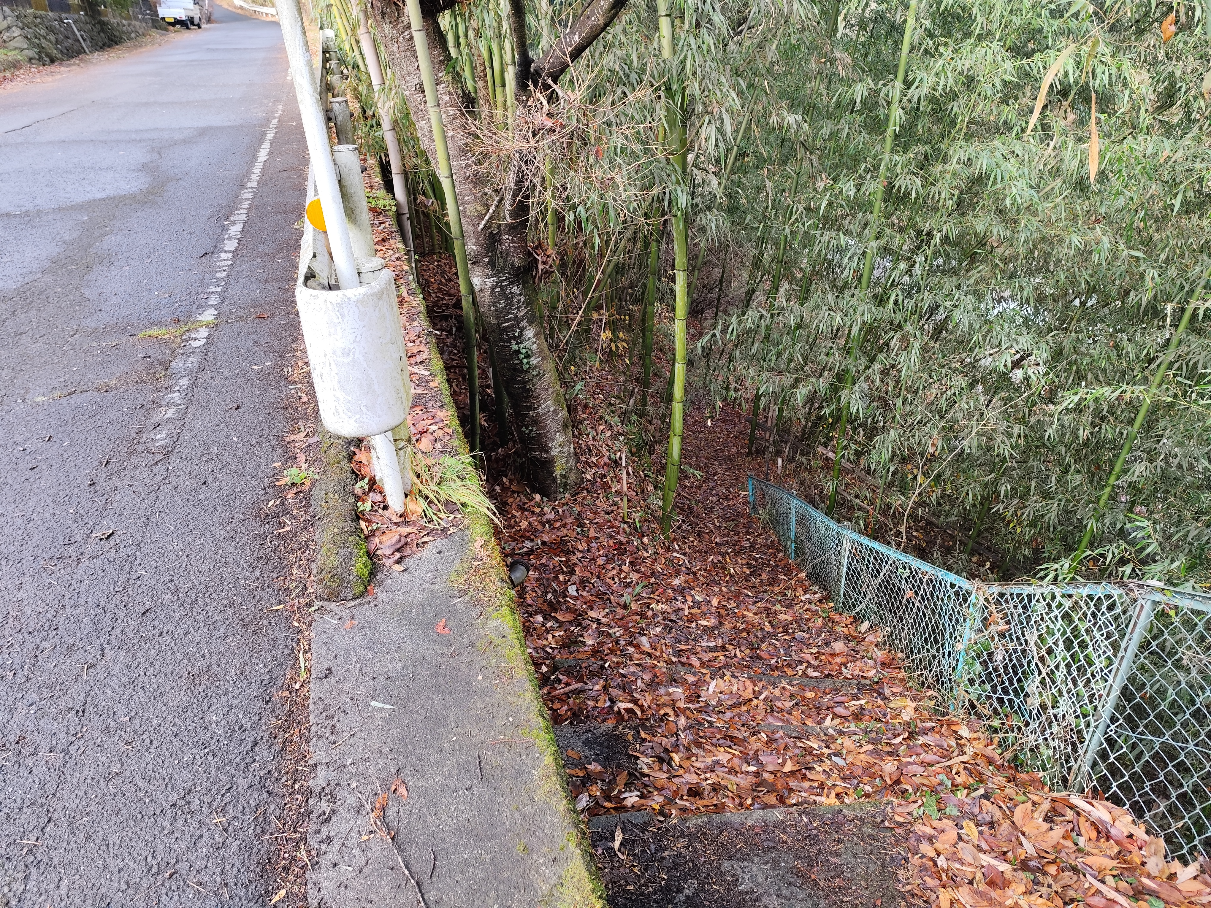 道は枯れ葉で埋もれた感じだったが、ワタシはティンバーランドのブーツを履いていたので、ためらうことなく下ってみる。