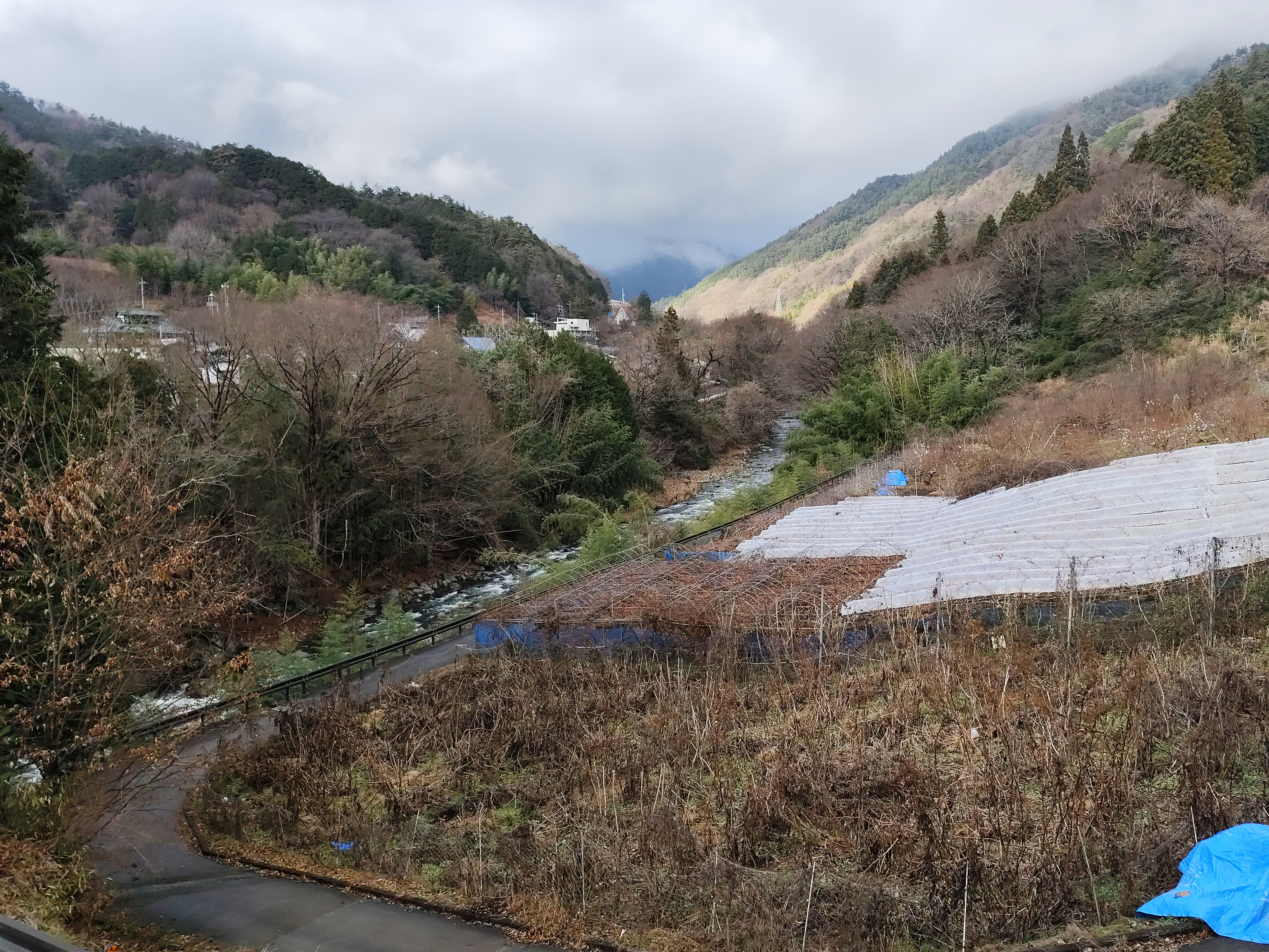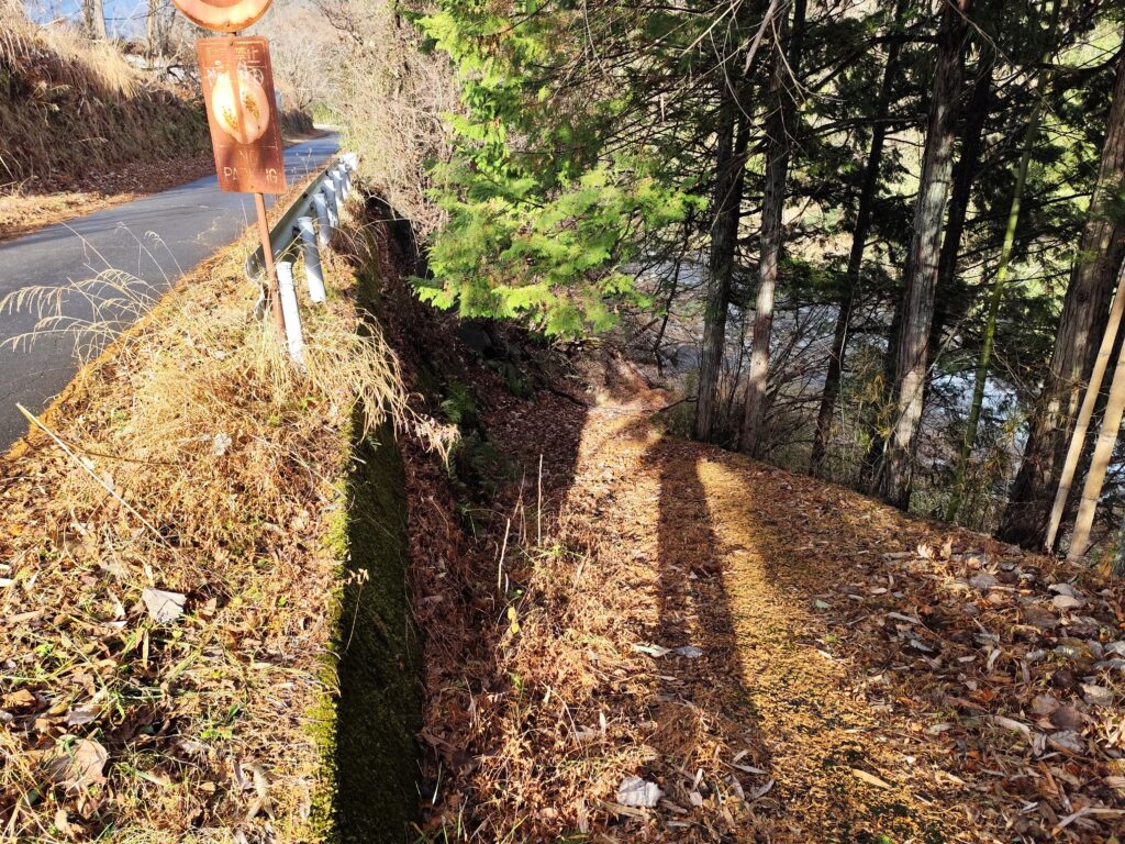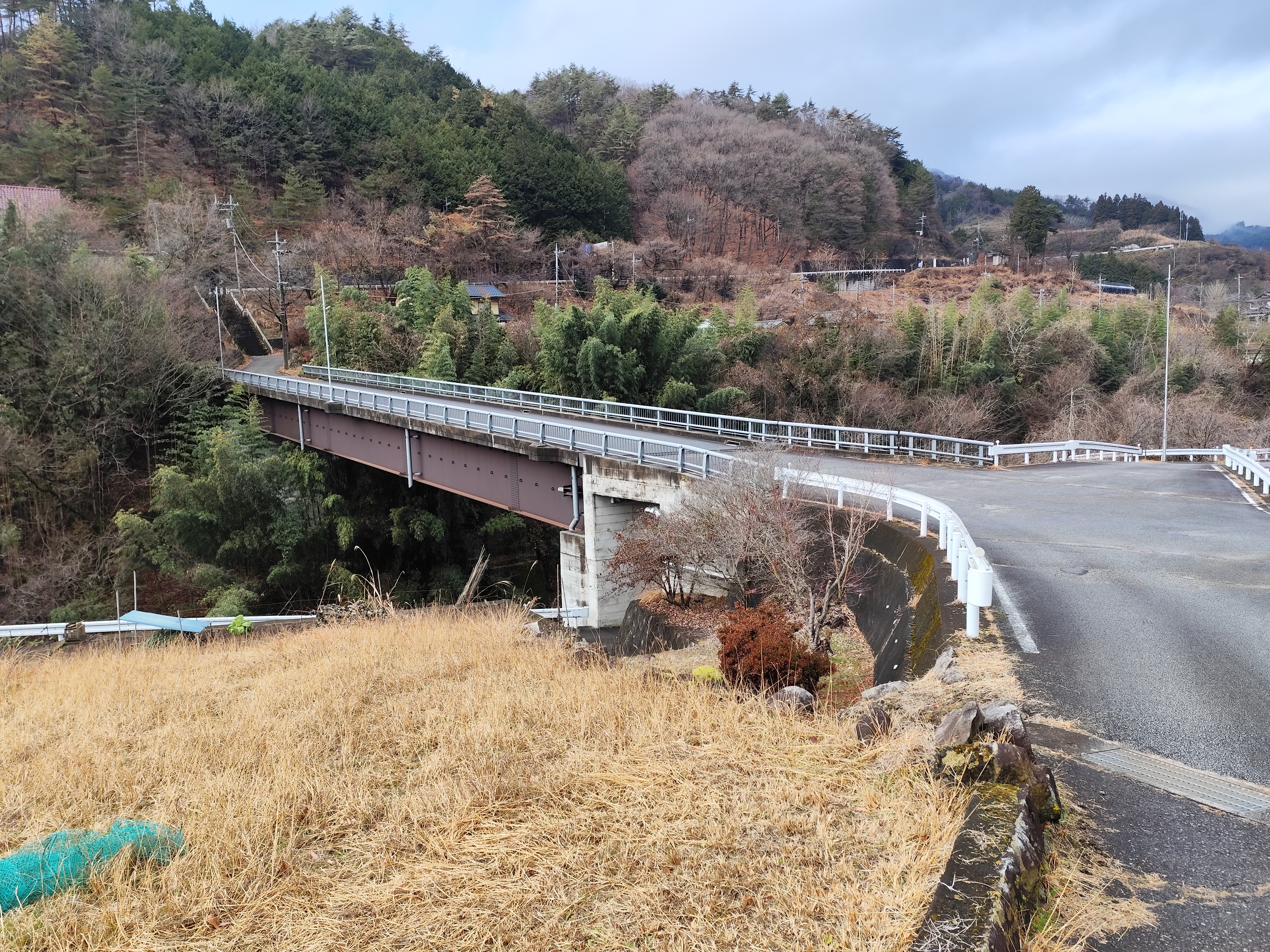 これからどんなところに連れていかれるのか…そんな不安も少々よぎったが、北に進むにつれて民家をちらほら見かけるようになり、ほっとひと安心。むしろ、国道140号と笛吹川に挟まれた下荻原は意外と家が多い印象だった。
