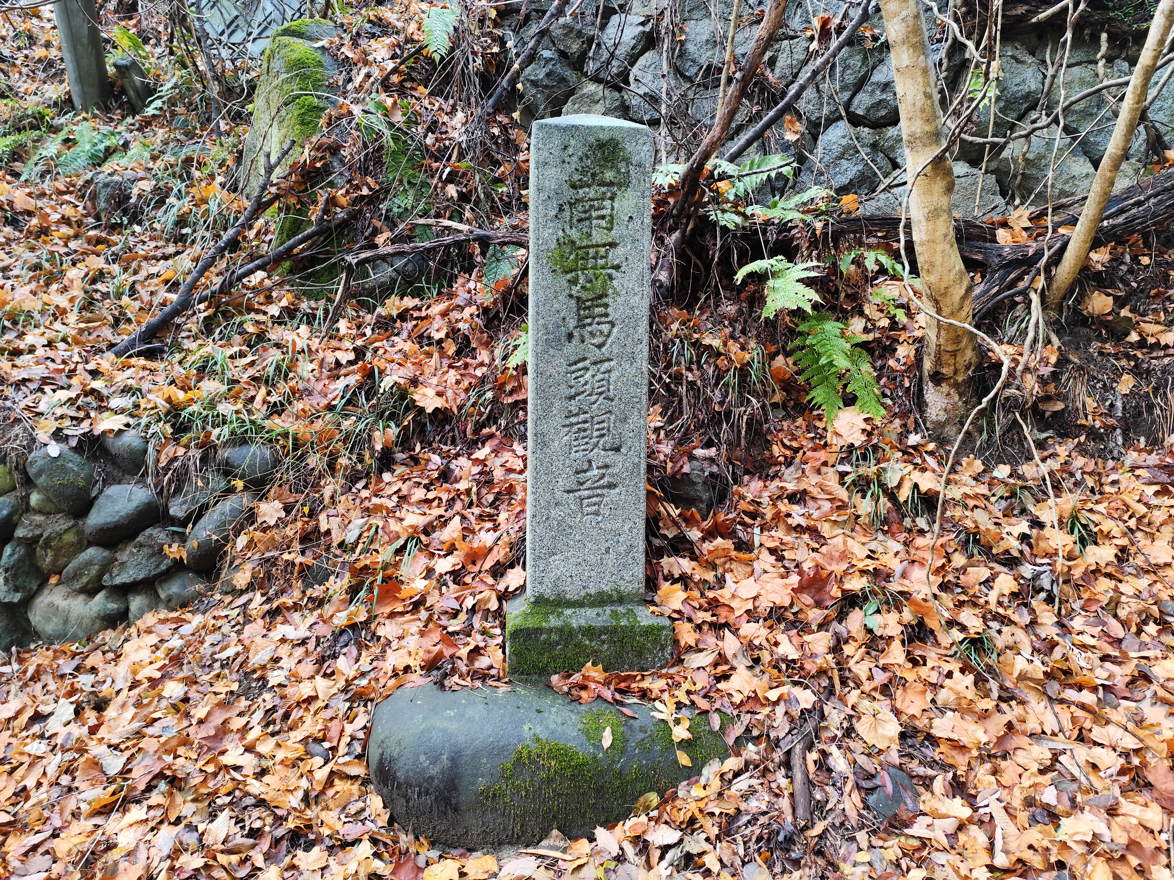馬込の通行止め区域内にある馬頭観音(2016年に撮影)。