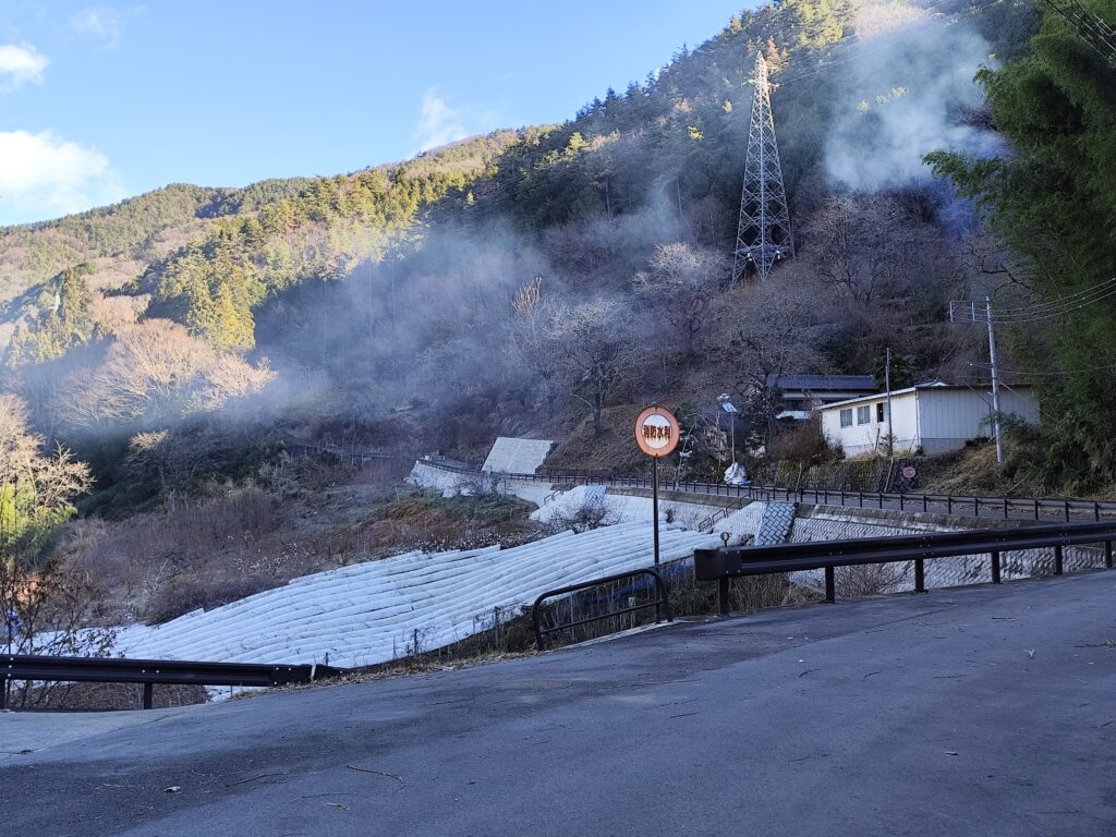 この日の朝はどちらかのお宅で何かを燃やしているようで、笛吹川に向かって煙が流れていた。