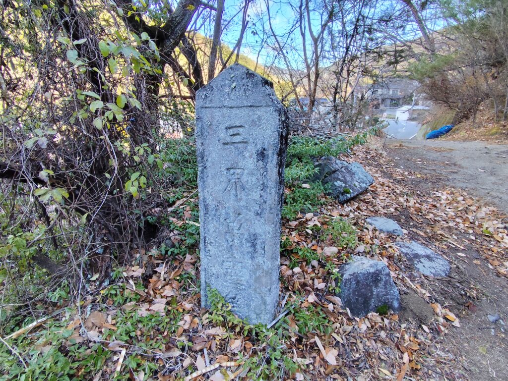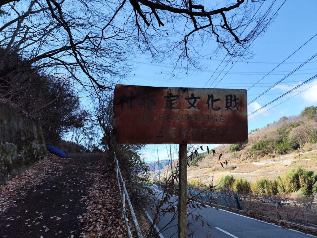 山梨県道213号 下荻原三日市場線に入り、しばらく歩くと案内板が見えてくる。