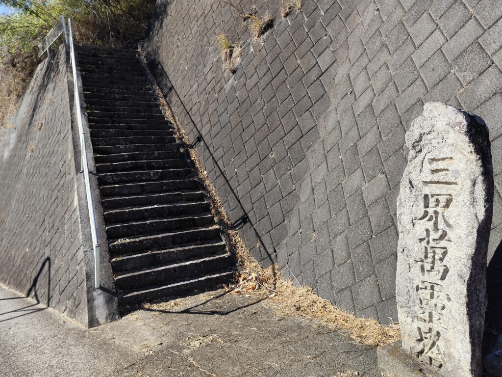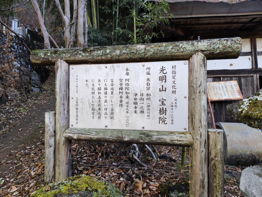 どうやらこちらが「宝樹院」のようだ。案内板がやけに錆びているのが気になりつつも、お寺に続く道を上ってみると…。