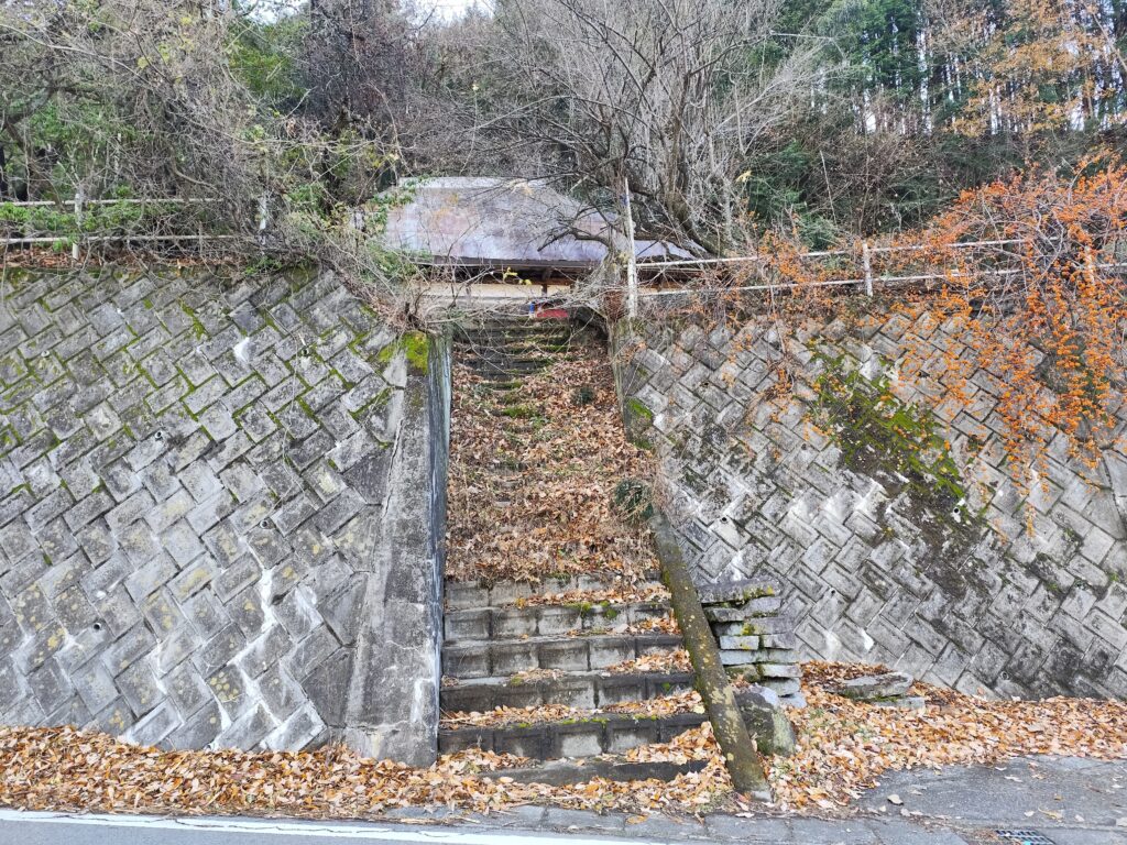 「廣蔵院」をお参りをしたあとで帰る際に気づいたのだが、国道沿いにお寺の駐車場があり、その向かいに軽自動車がギリギリ通れるくらいの狭い坂道が続いている。途中には境内に出られる石段もあり、本来はこちらが参道とされているようだ。