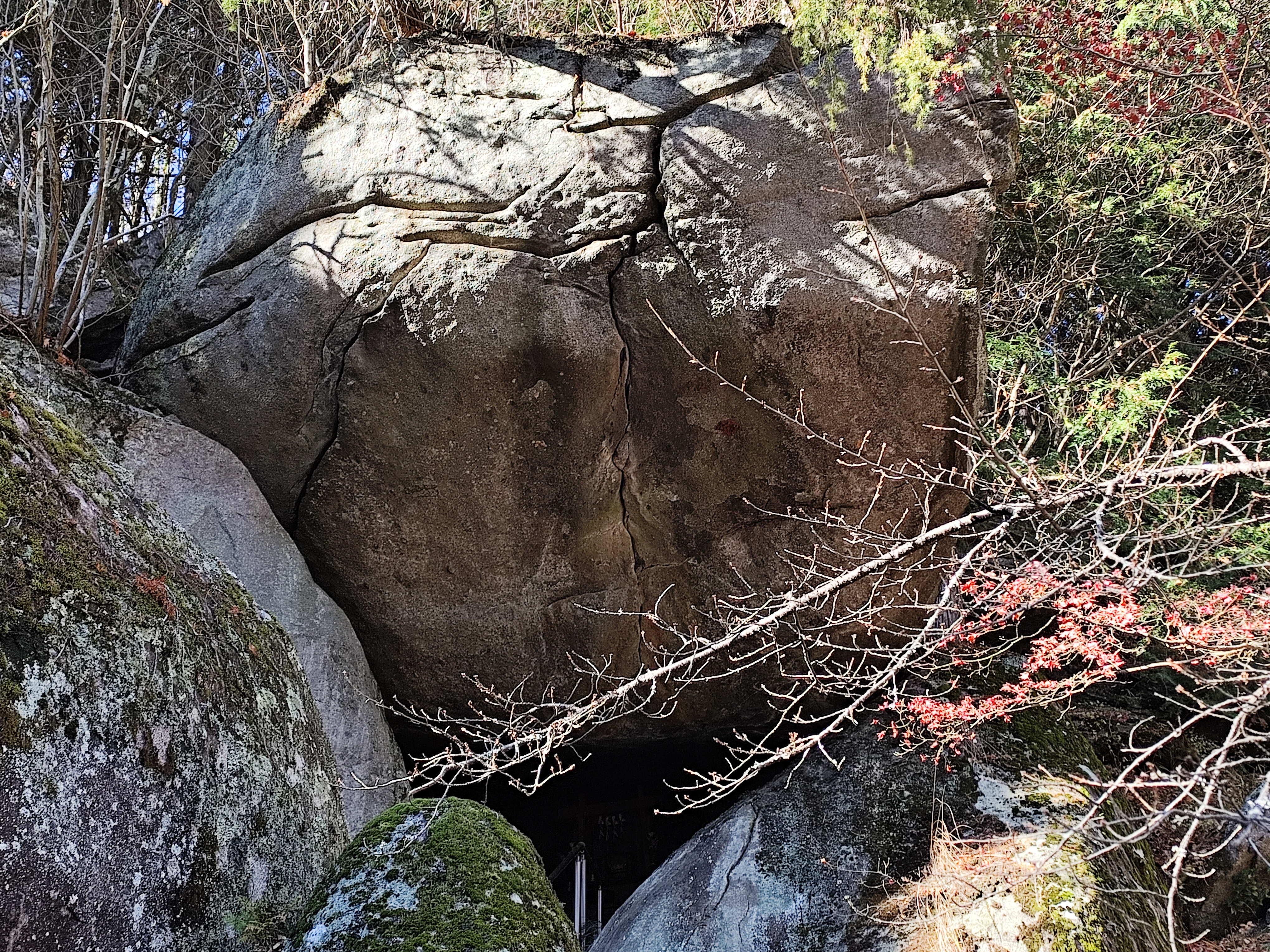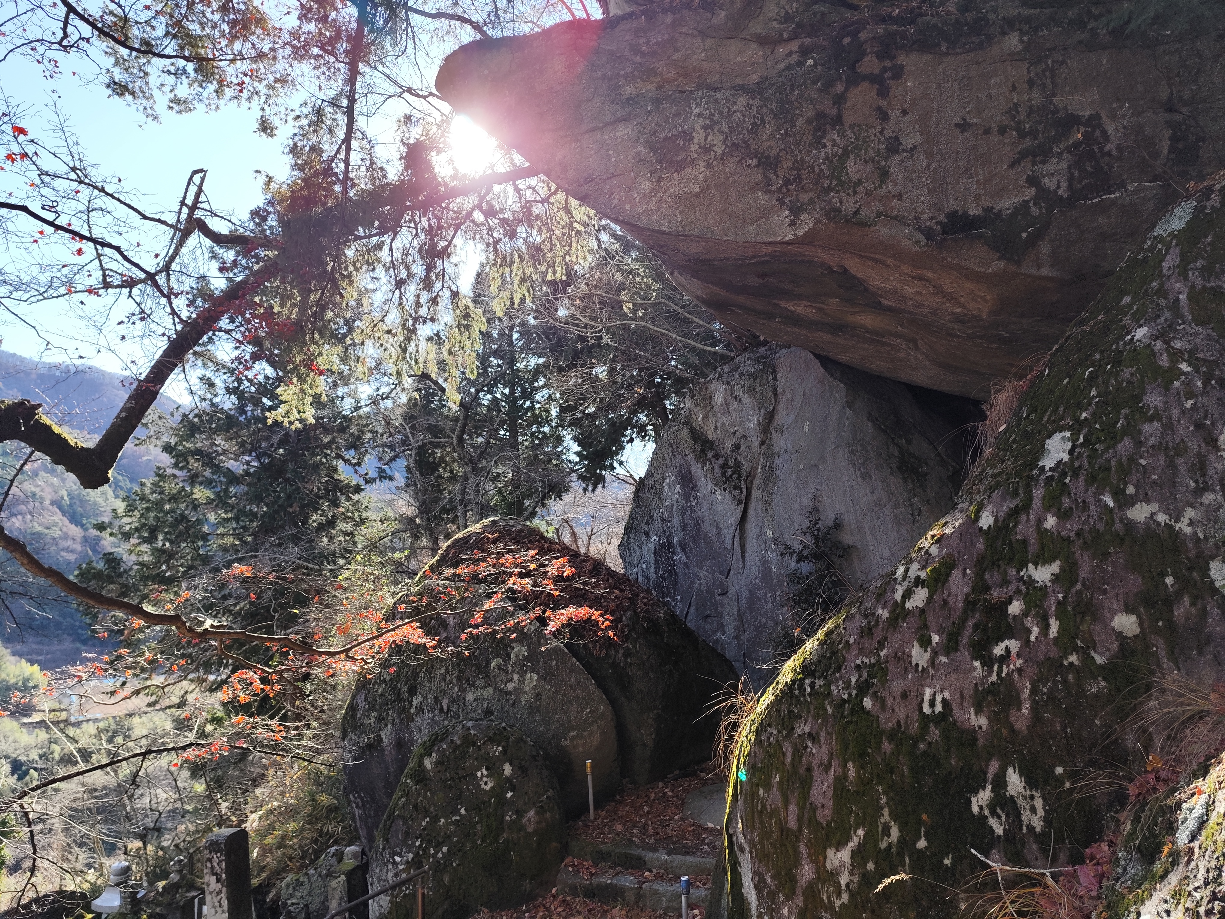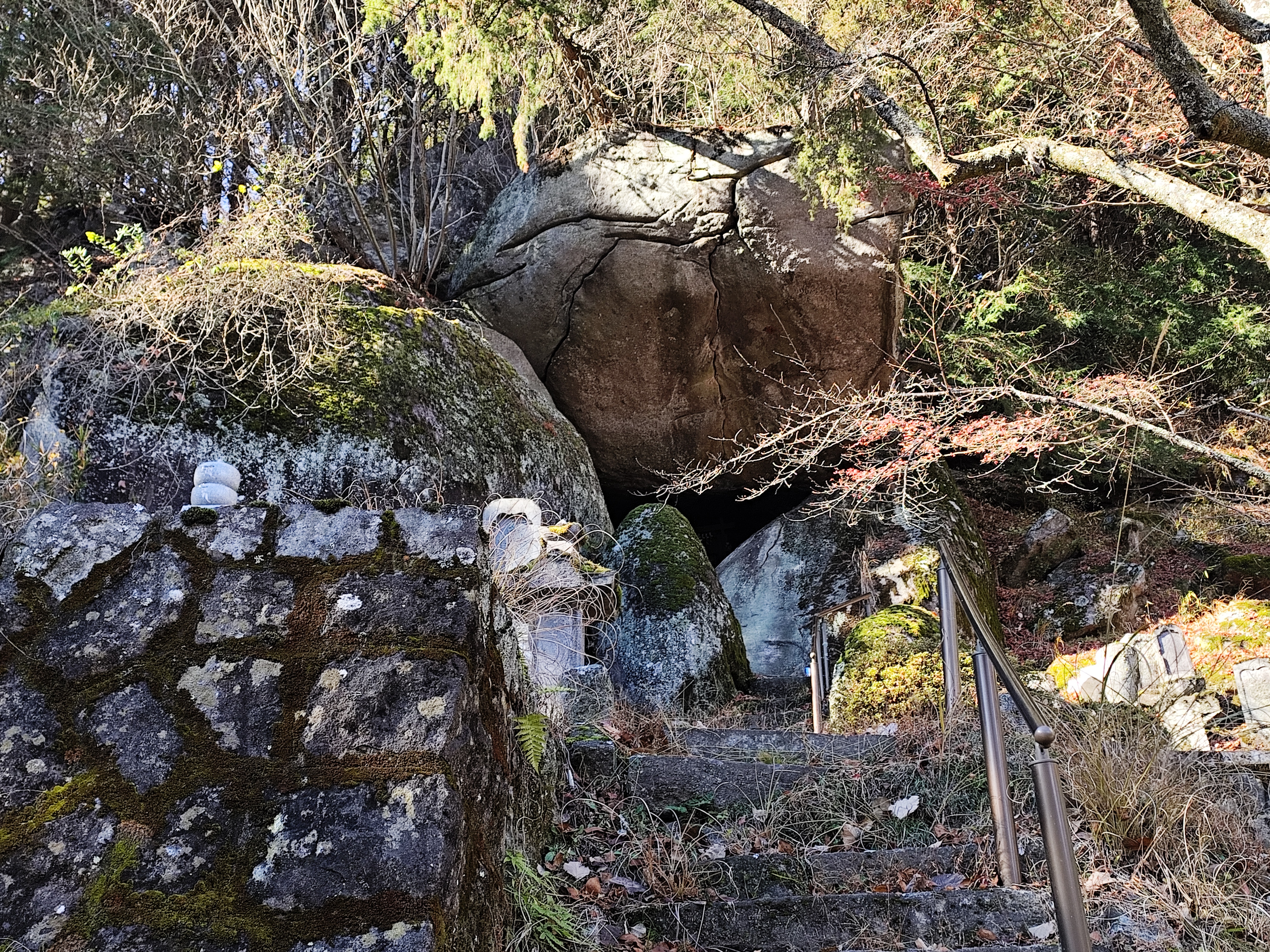 さらに、その上には突き出ているような巨岩まであり、石段はその中のほうまで続いている。