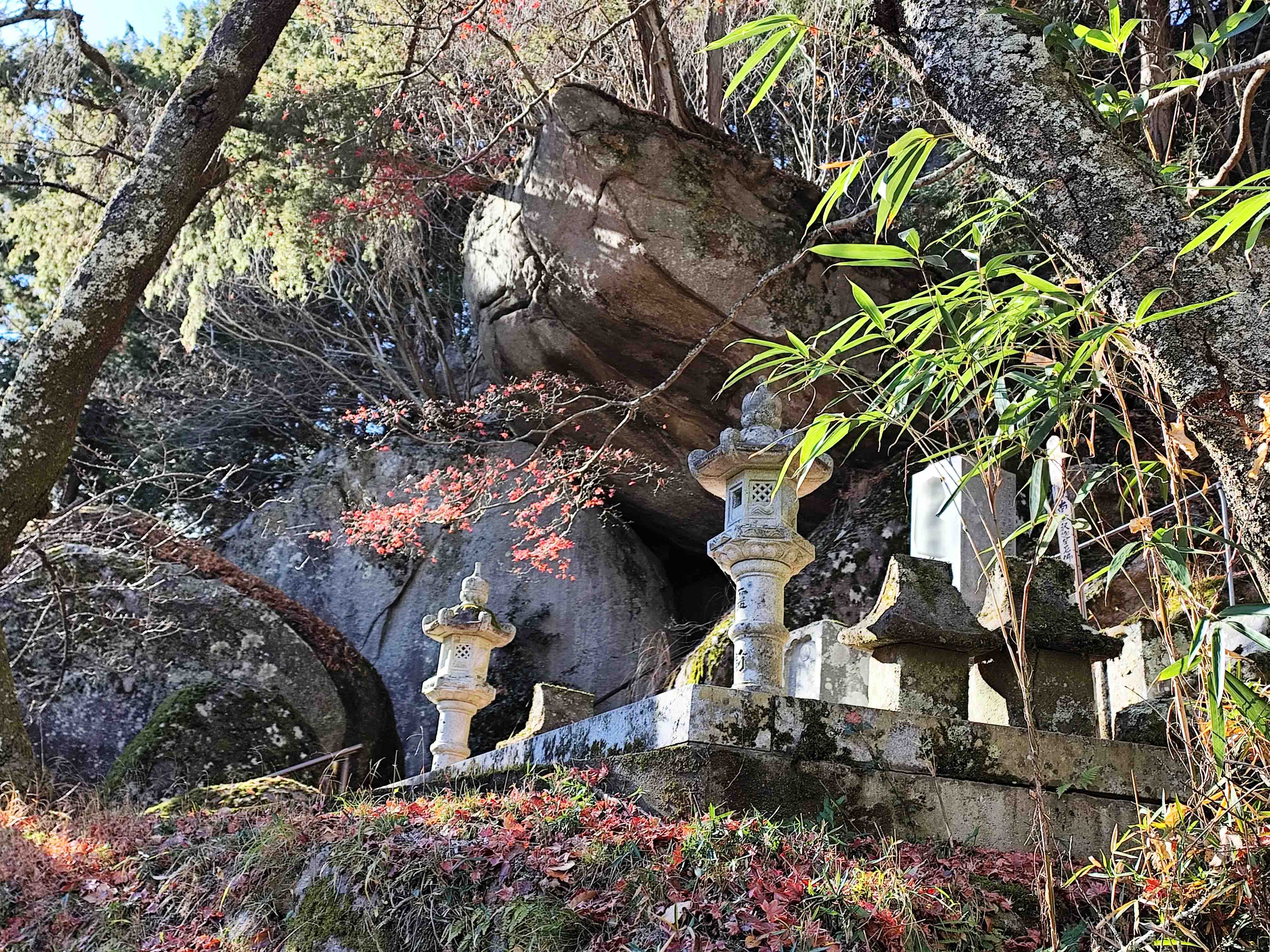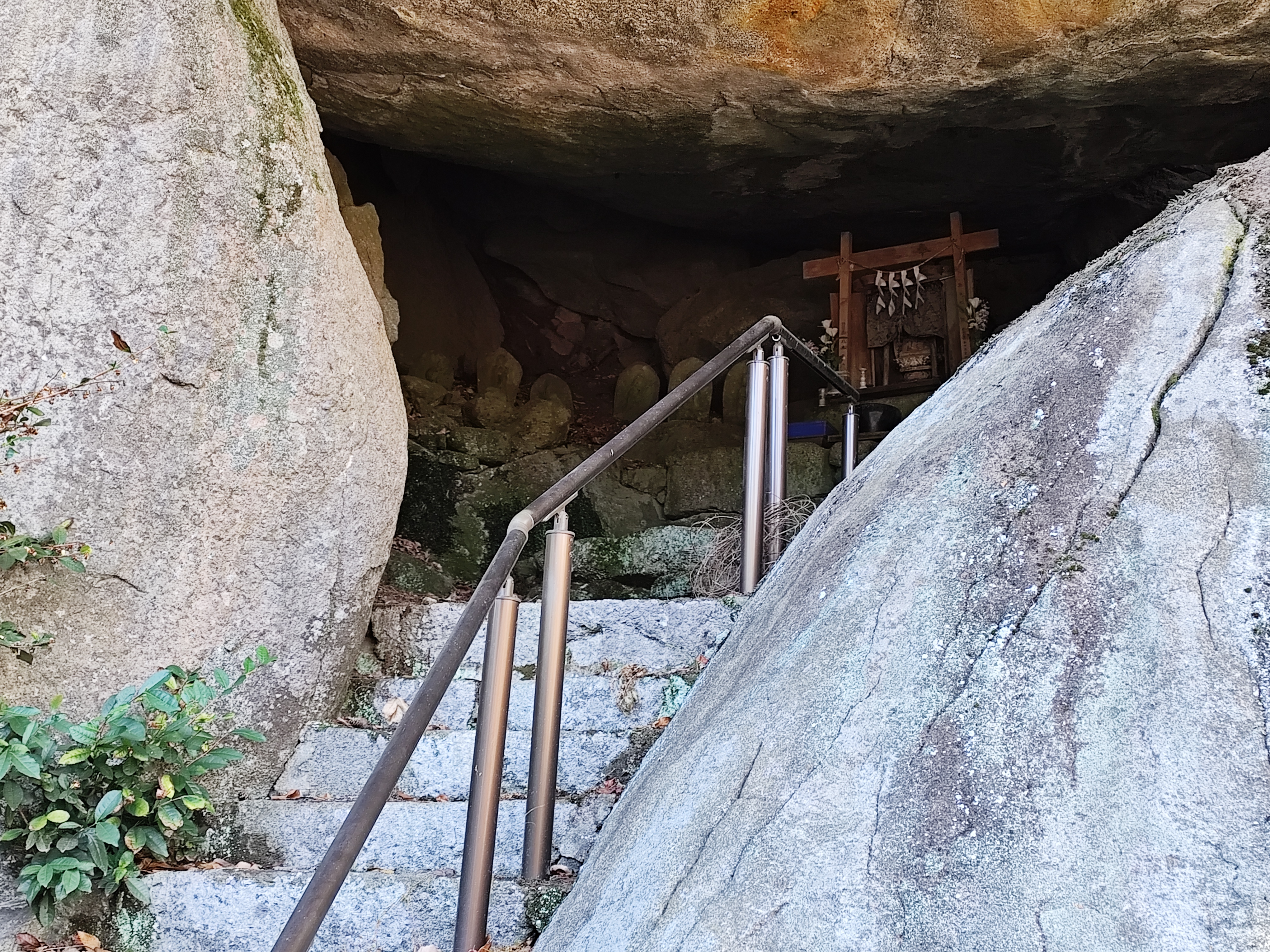 驚きを胸に抱えたまま、ワタシは石段を上って突き出た巨岩の下にたどり着く。