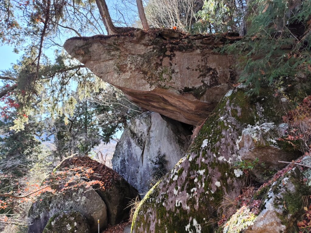 ワタシは一瞬、「…えっ!?」と思ってしまった。山梨県内には「昇仙峡」をはじめ、山肌がむき出しになっているところがあるし、そういった景色を何度も見てきた。ただし、こちらのように微妙な均衡を保ったままの巨岩を間近で見るのは初めてだった。
