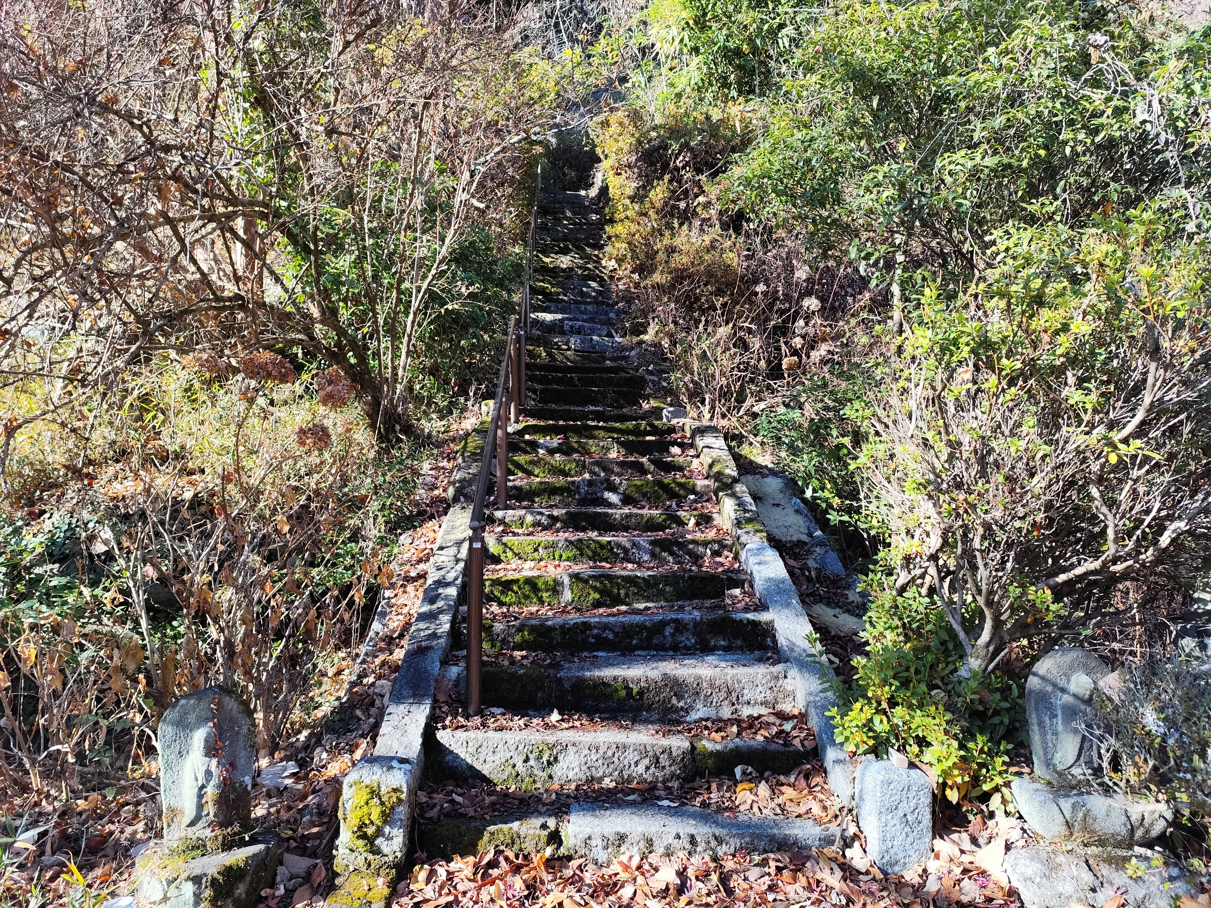 このとき、水子地蔵の近くに古びた石段があるのを発見。石段の左右は茂みに覆われていて、その先は見通せない。ただ、立ち入り禁止の看板があるわけでもない。もし、この先も墓地だったら引き返そう…そう思いながら、ワタシは石段を上っていった。
