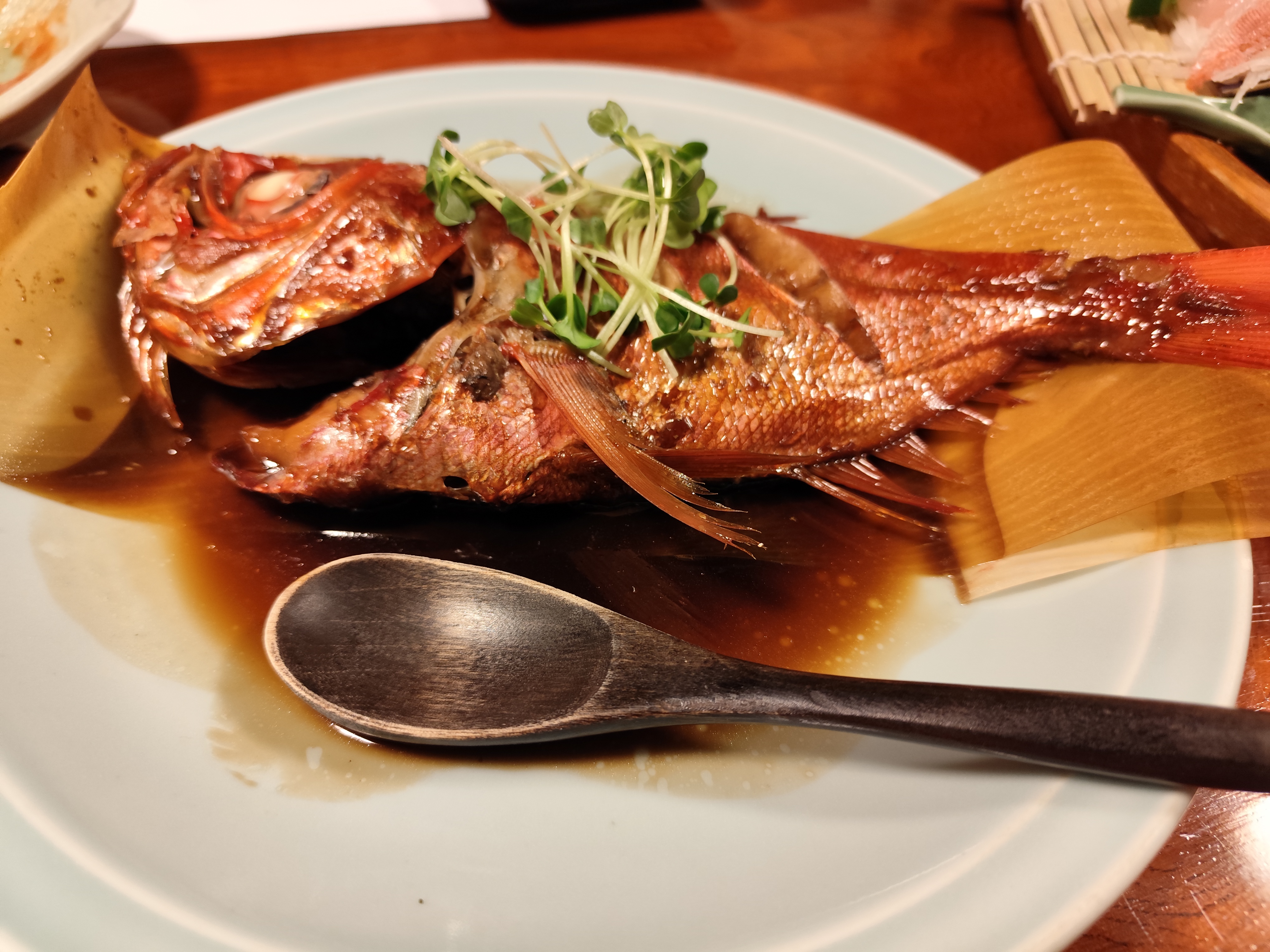秋の旅行で沼津へ。今回のお宿は三代目あだち。新鮮な魚がいっぱいの船盛や金目鯛の煮付けといった魚料理だけでなく、他の料理もおいしくて大満足!