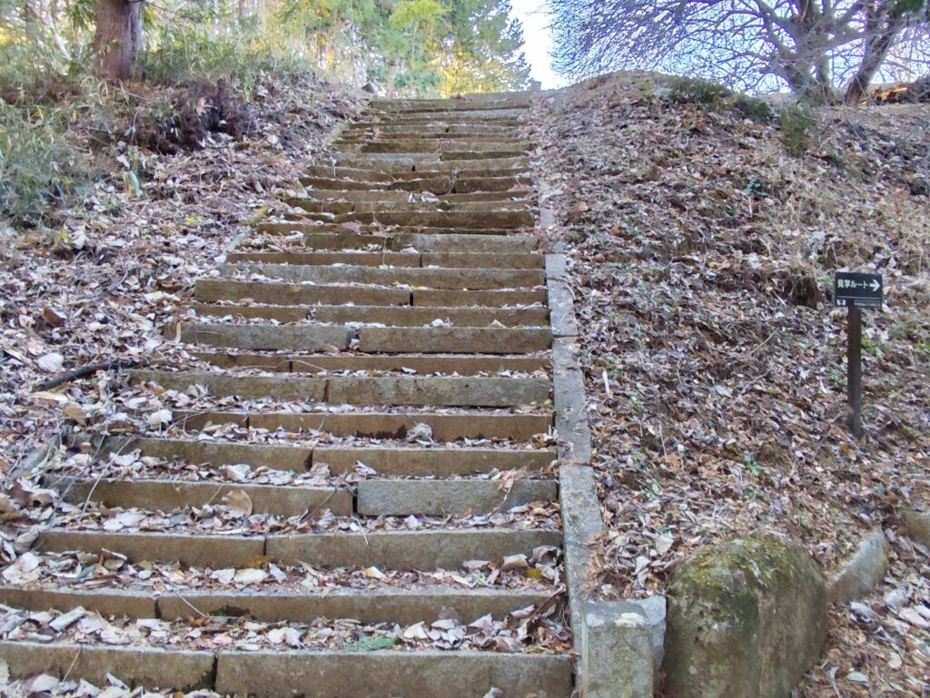 しばらく進むと「福蔵院」の南側、墓地の外あたりでの古い石段を見つける。上に何があるのか興味があったものの、パッと見た感じでは広場になっているような…。ここまで坂道をさんざん上ってきたこともあり、ワタシは石段を上らずにスルーした。