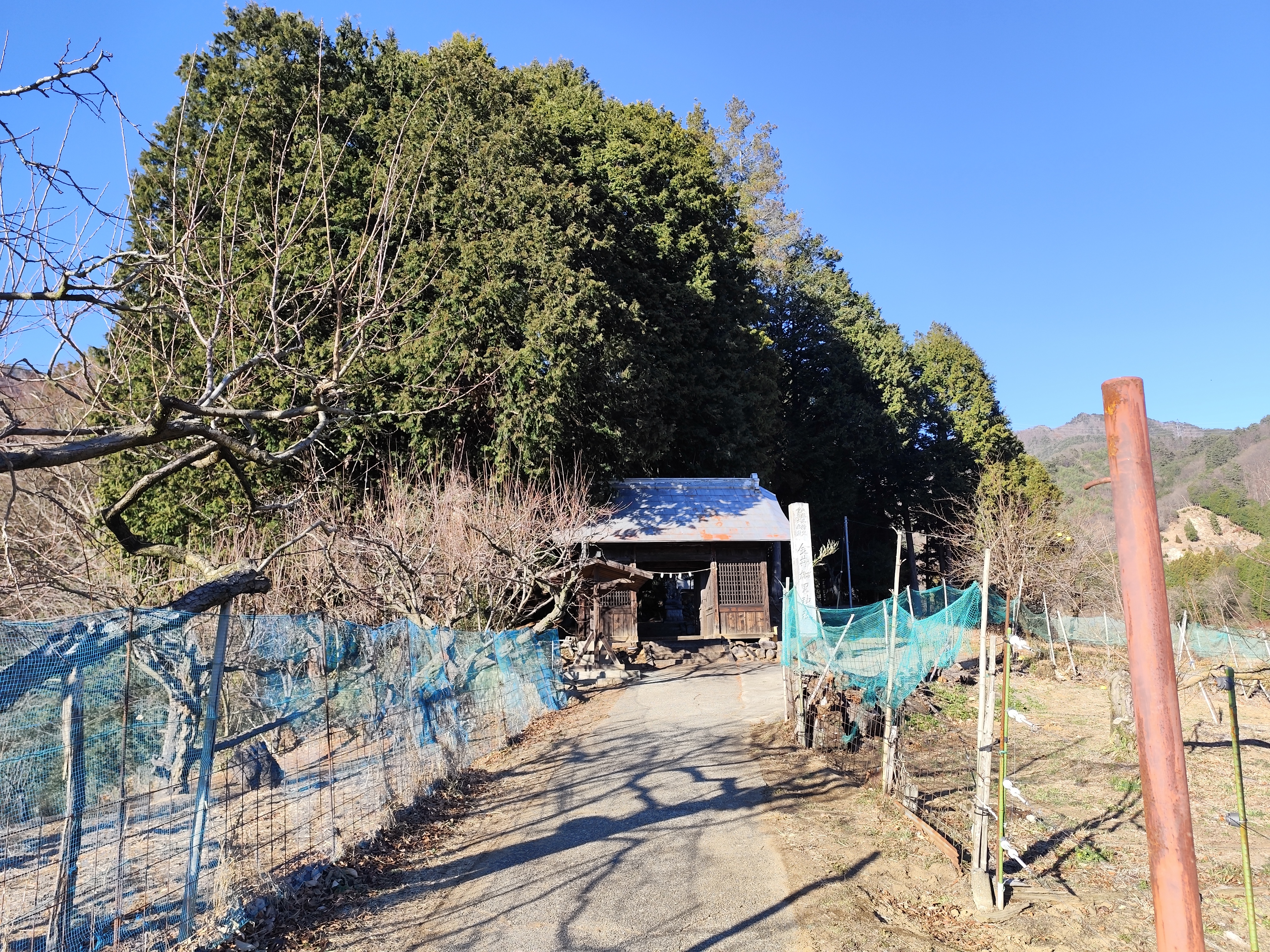 上条集落を守るように立つ「金井加里神社」