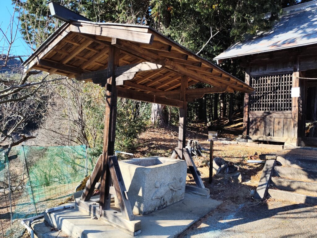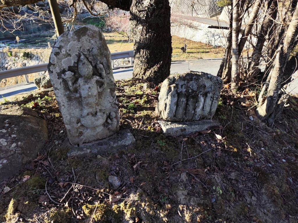 この祭りに向けて、正月三が日明けの土曜日には近くで採れるヒノキと杉、竹を使った「お小屋かけ」がなされるのだとか。そのとき、擁壁の上にちんまりと鎮座する道祖神がどのような姿になるのか、見てみたくなってしまった。