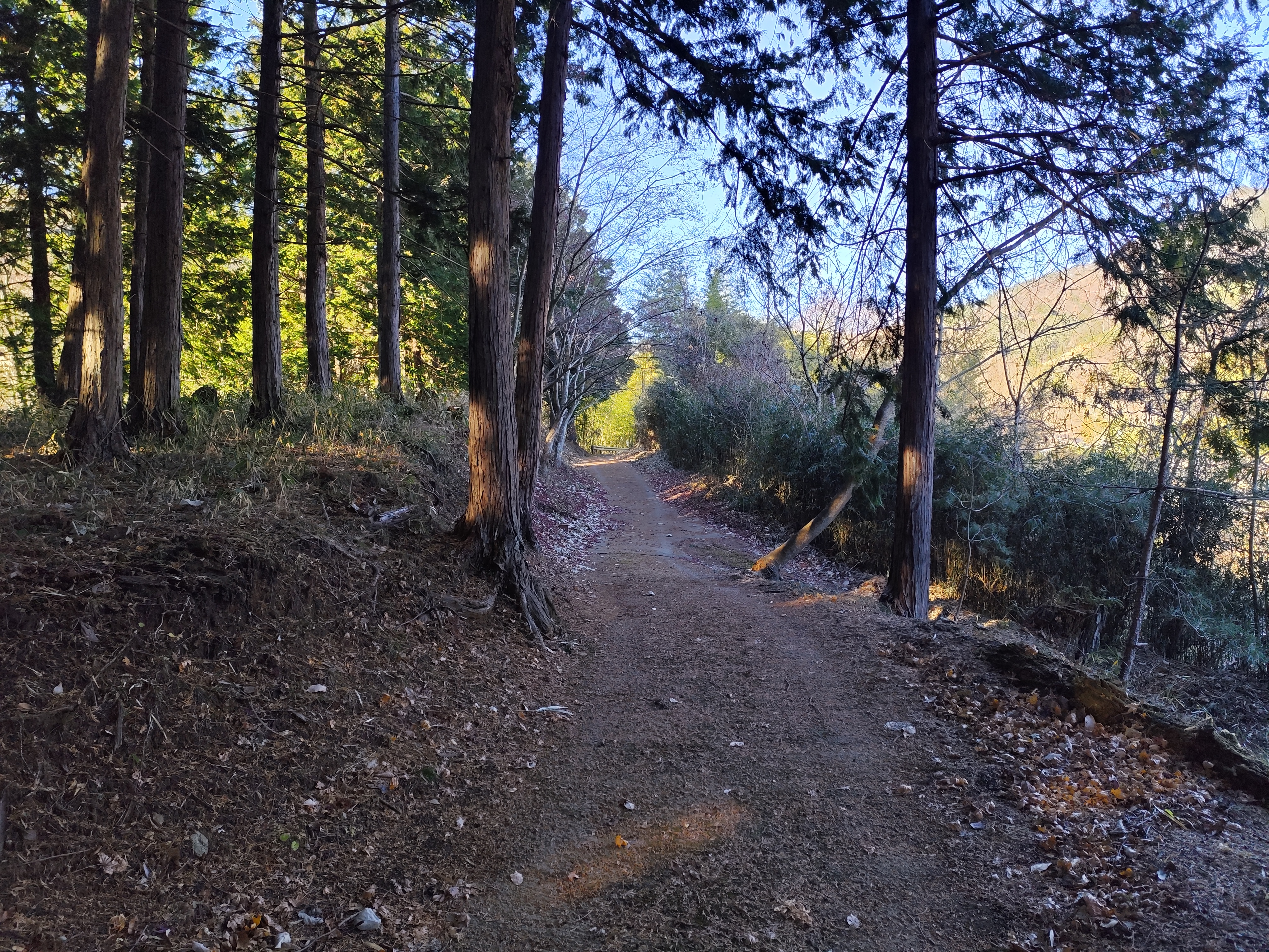 「金井加里神社」そばの古道を北上すると、やがて西側が開けた三叉路に出る。