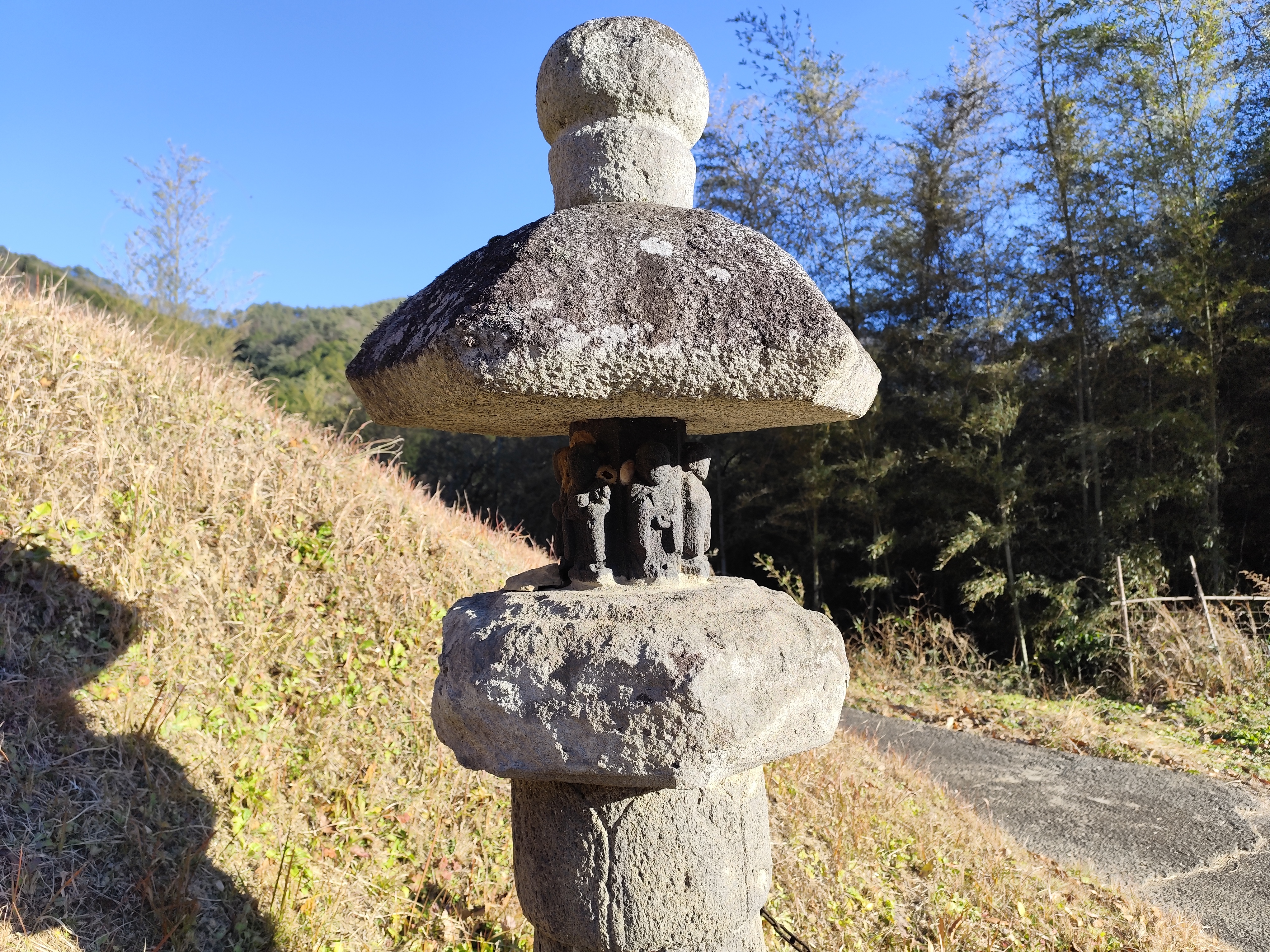 六地蔵幢とは石灯籠に似た形をしているのが特徴で、火袋に当たる龕部を六角形に作り、それぞれの面にお地蔵さまが彫られている。…ということをワタシはこちらの記事を書いているときに調べて初めて知った。ブログを始めてから学ぶことばかりだなぁ。