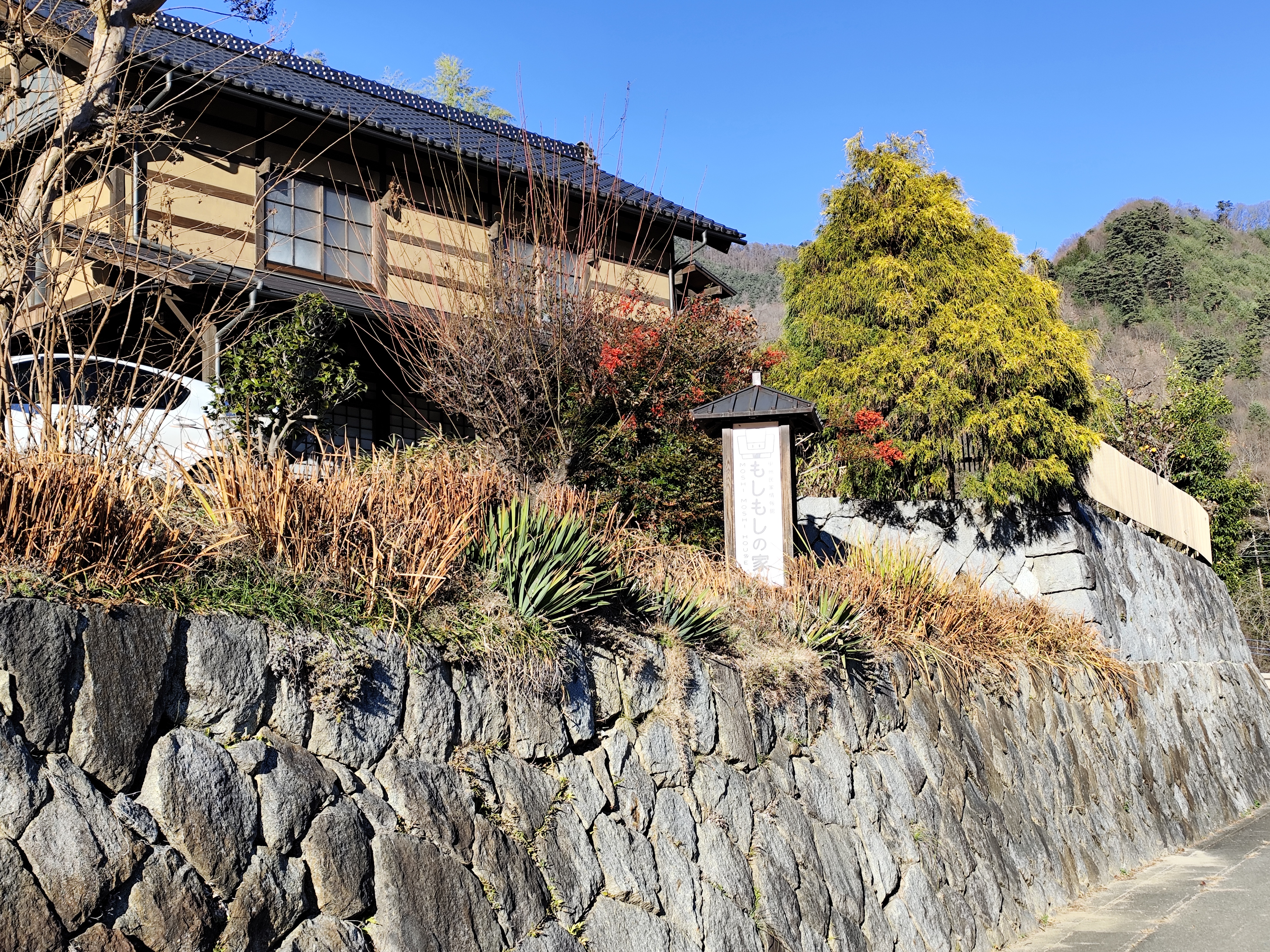 宿泊のほか、日帰りでも利用できる「もしもしの家」は江戸時代末期の古民家だという。なぜこのような名称かというと、昔はこの家にのみ電話があり、集落の方々が電話を借りに来ていたため、「もしもしの家」と呼ばれるようになったとか。なんとものどかで心が和むエピソードだ。