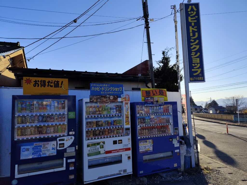さんざん歩き回ったワタシは、それでも山梨ではお馴染みの「ハッピードリンクショップ」で水分補給をしてから歩きはじめる。このときに飲んだのは冷たいソーダ。この日は12月であり、そろそろ日が暮れて寒くなるタイミングだというのに…。