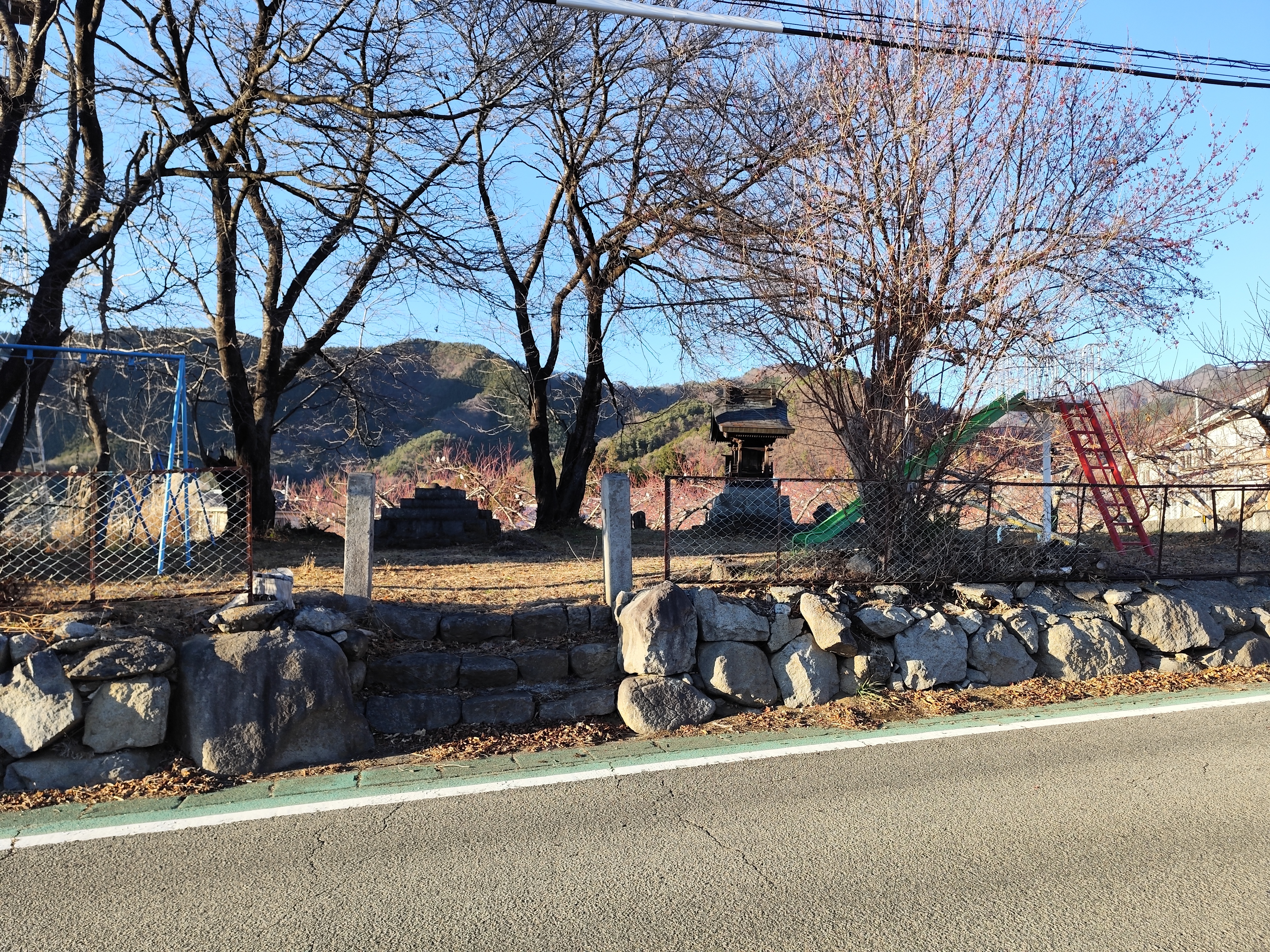 県道201号に戻ったワタシは、県道沿いの公園に祠があるのを発見。今度はスルーせずに寄ってみる。