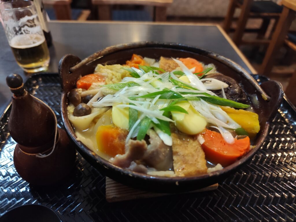 そんなつゆがほうとうや野菜によく絡んでおいしいし、さまざまな野菜が楽しめるので全然飽きない。おいしいほうとうをありがとうございました!
