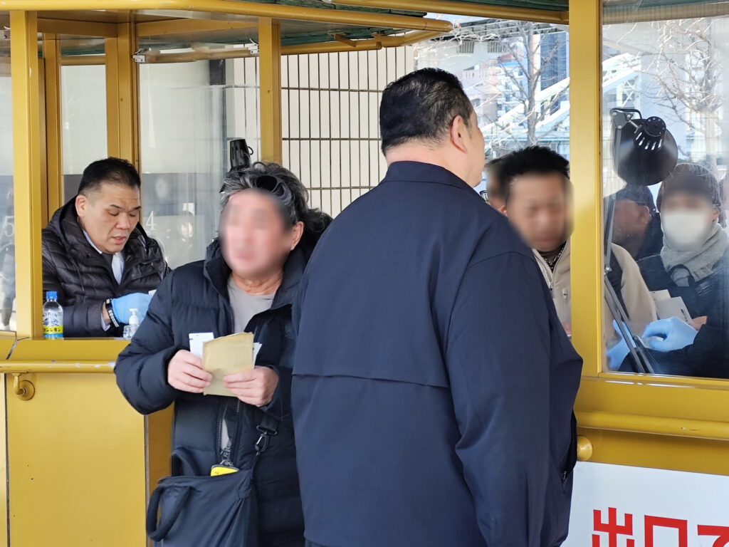引退相撲のチケット売り場は大混雑。