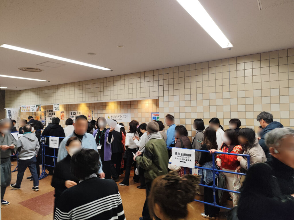 このとき、エントランスホールの近くに数多くのファンが集まっているエリアがあった。よく見てみると、北勝富士、宝富士、遠藤の引退相撲のチケット売り場で、中でも遠藤のチケット売り場は大盛況! ワタシは推しだった大山親方(元小結・北勝富士)本人がいたこともあり、北勝富士の引退相撲のチケットを買おうかかなり迷ったが、今回は我慢しておいた。