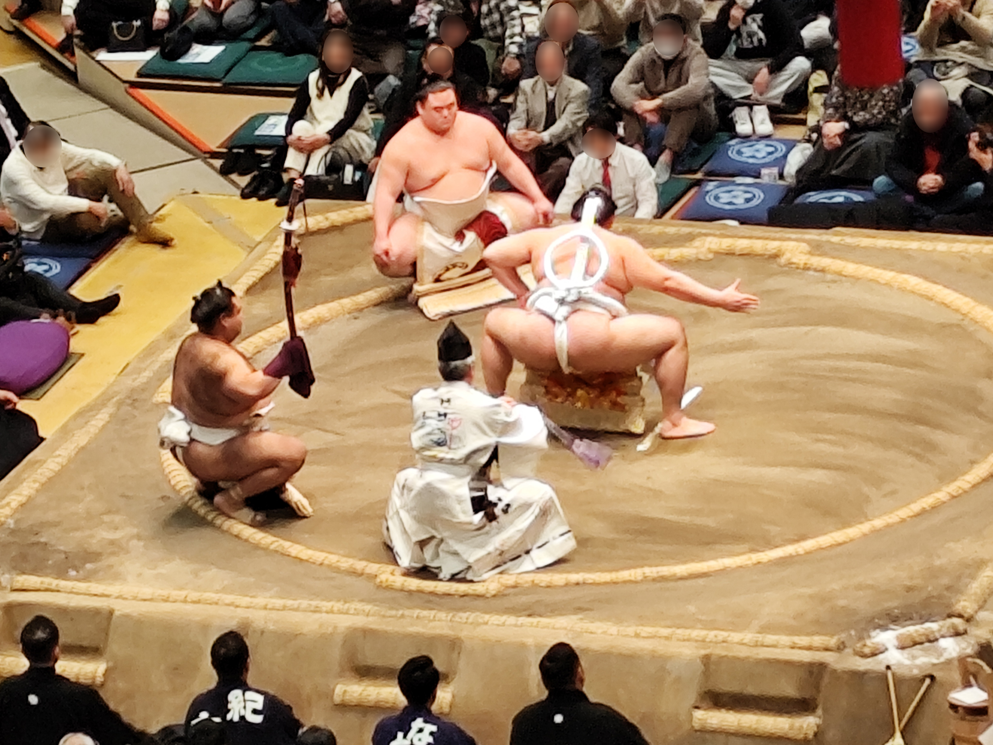 ここでやっと落ち着いてお寿司をいただける…と思いきや、十両の取組が終わったところで蒼富士と旭富士による序ノ口の優勝決定戦が行われることに。