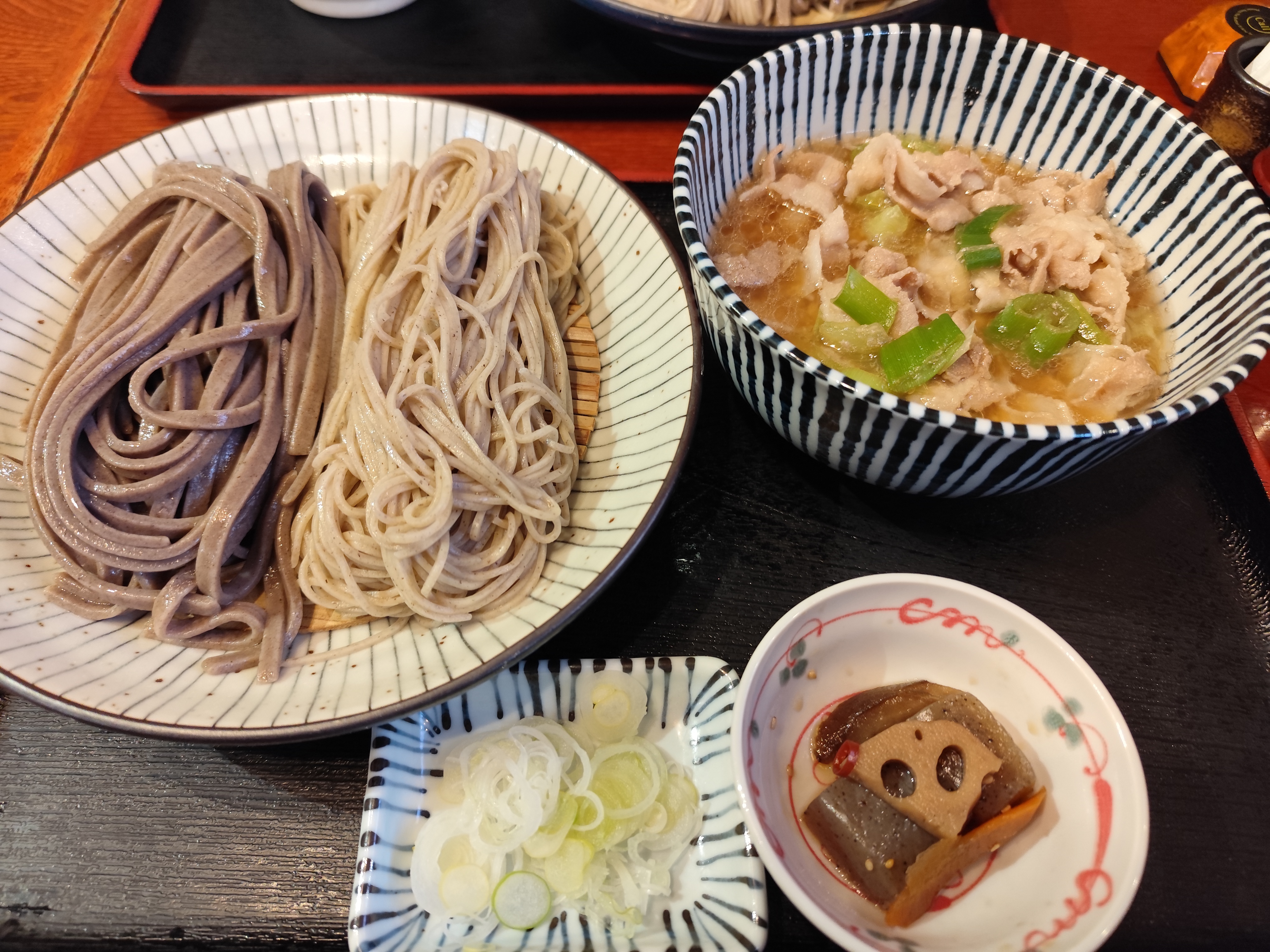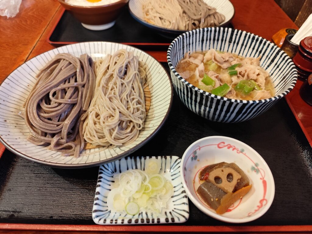 しばらくして、それぞれ注文したおそばがテーブルに並んだとき、ワタシは「太蕎麦」の太さにちょっと驚いてしまった。まるでうどんのようなボリュームならば、味が濃いめのつけ汁になるのも納得だ。