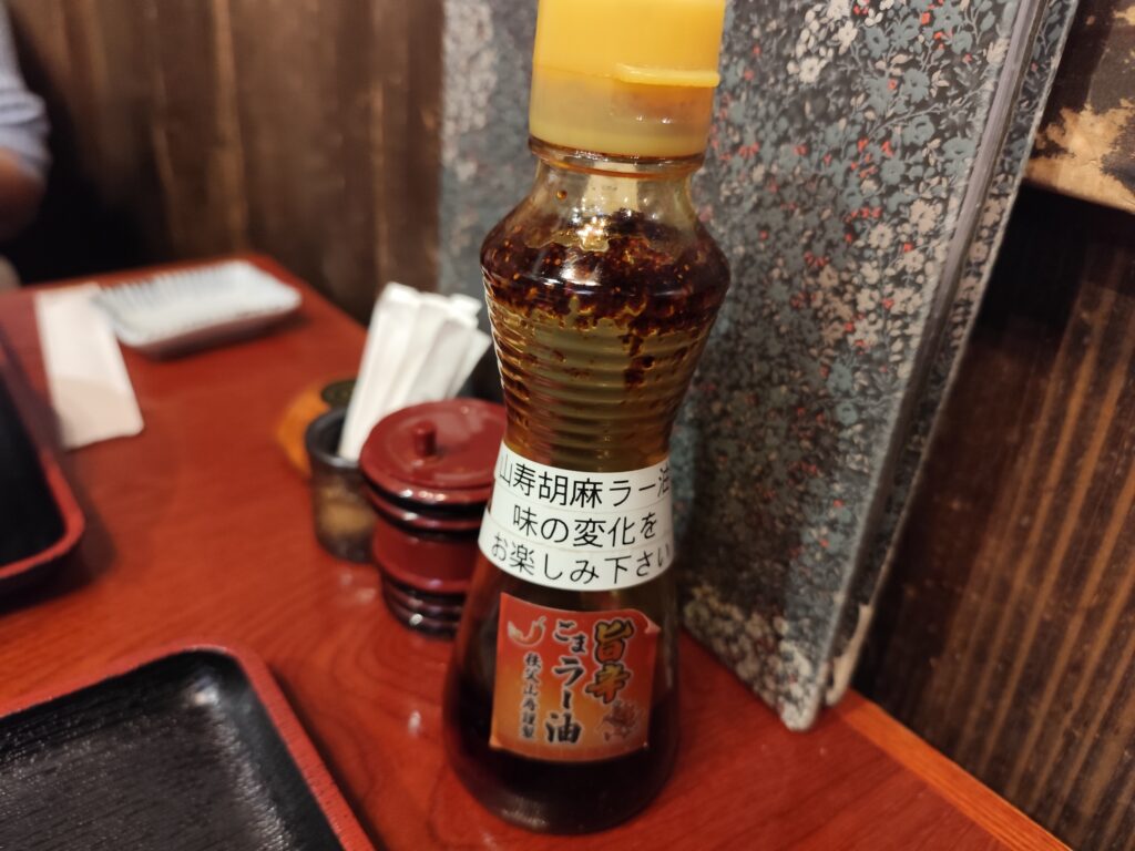 それでも「太蕎麦」の存在感は濃厚なつけ汁に負けておらず、ワタシは途中でテーブルにあった「旨辛胡麻ラー油」を垂らして味変。すべて平らげたときには、おそばをたらふくいただいたという満足感でいっぱいだった。一方、Kのほうもたっぷりのとろろに満足した様子。ごちそうさまでした!