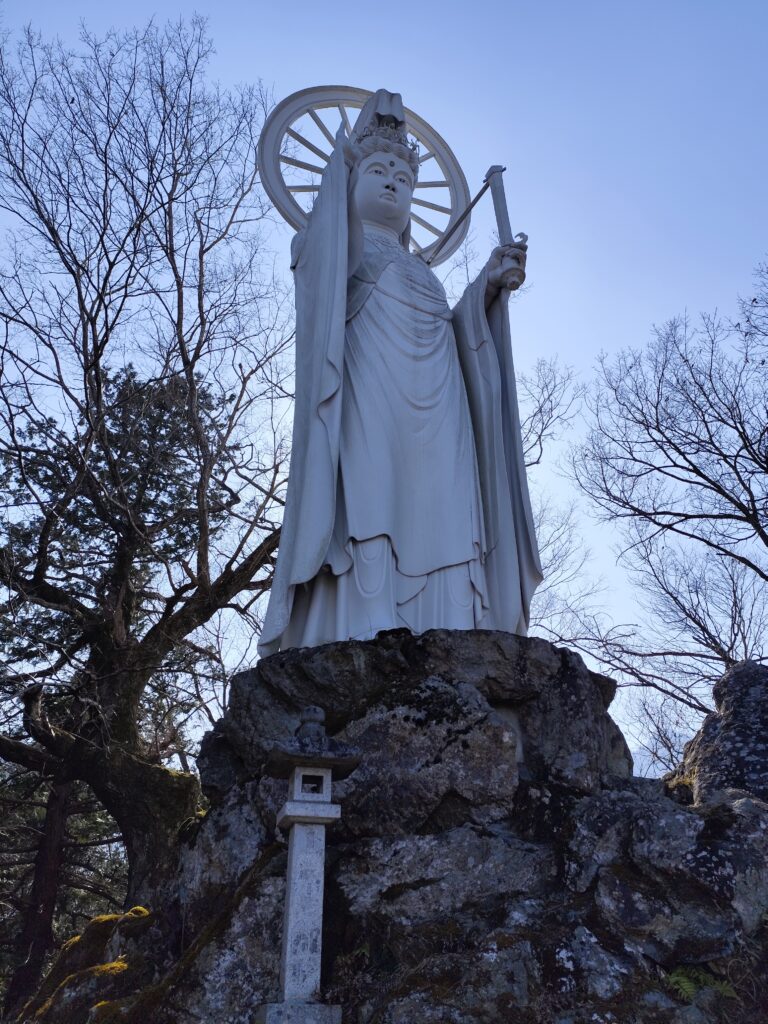 山の上にそびえる高さ15mの護国観音