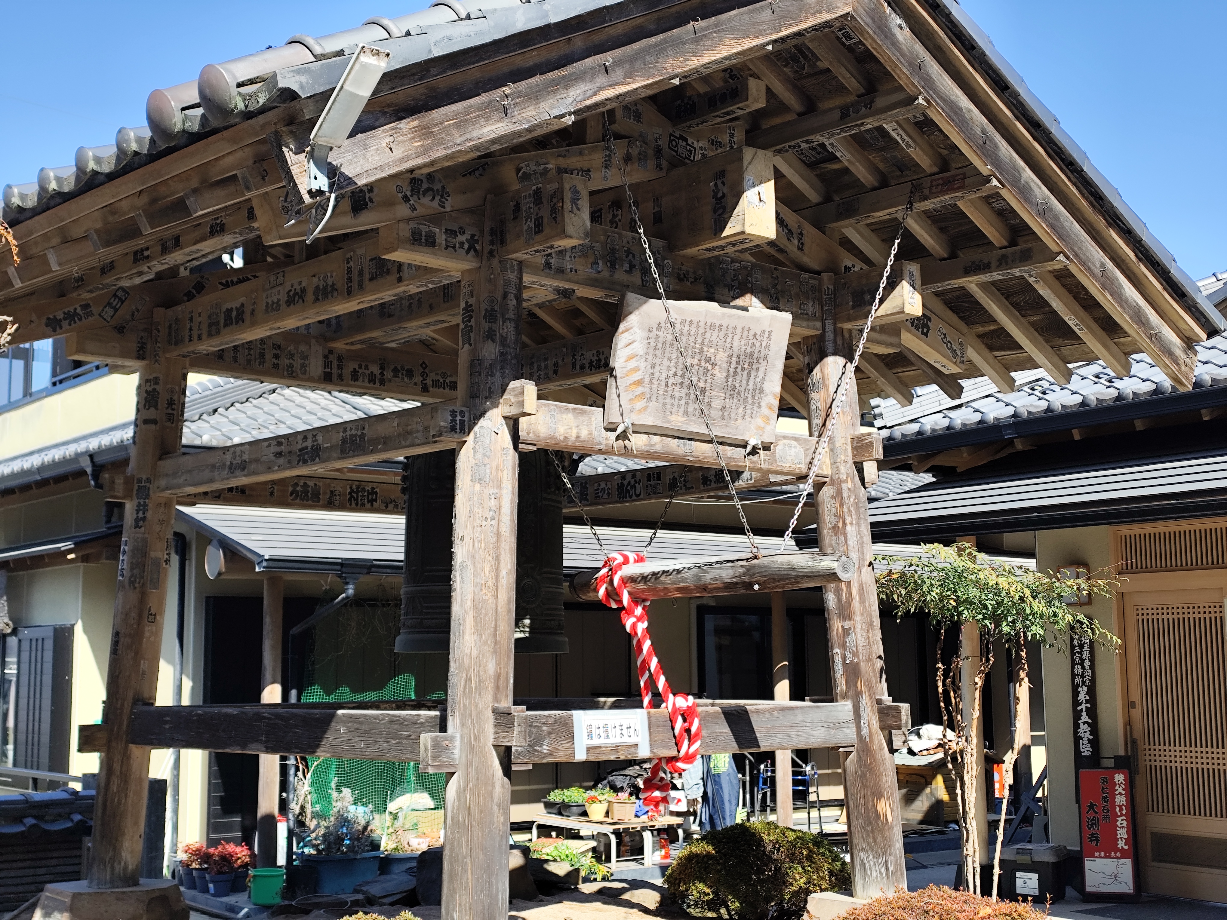 藤棚の隣の鐘楼。鐘は撞けない。