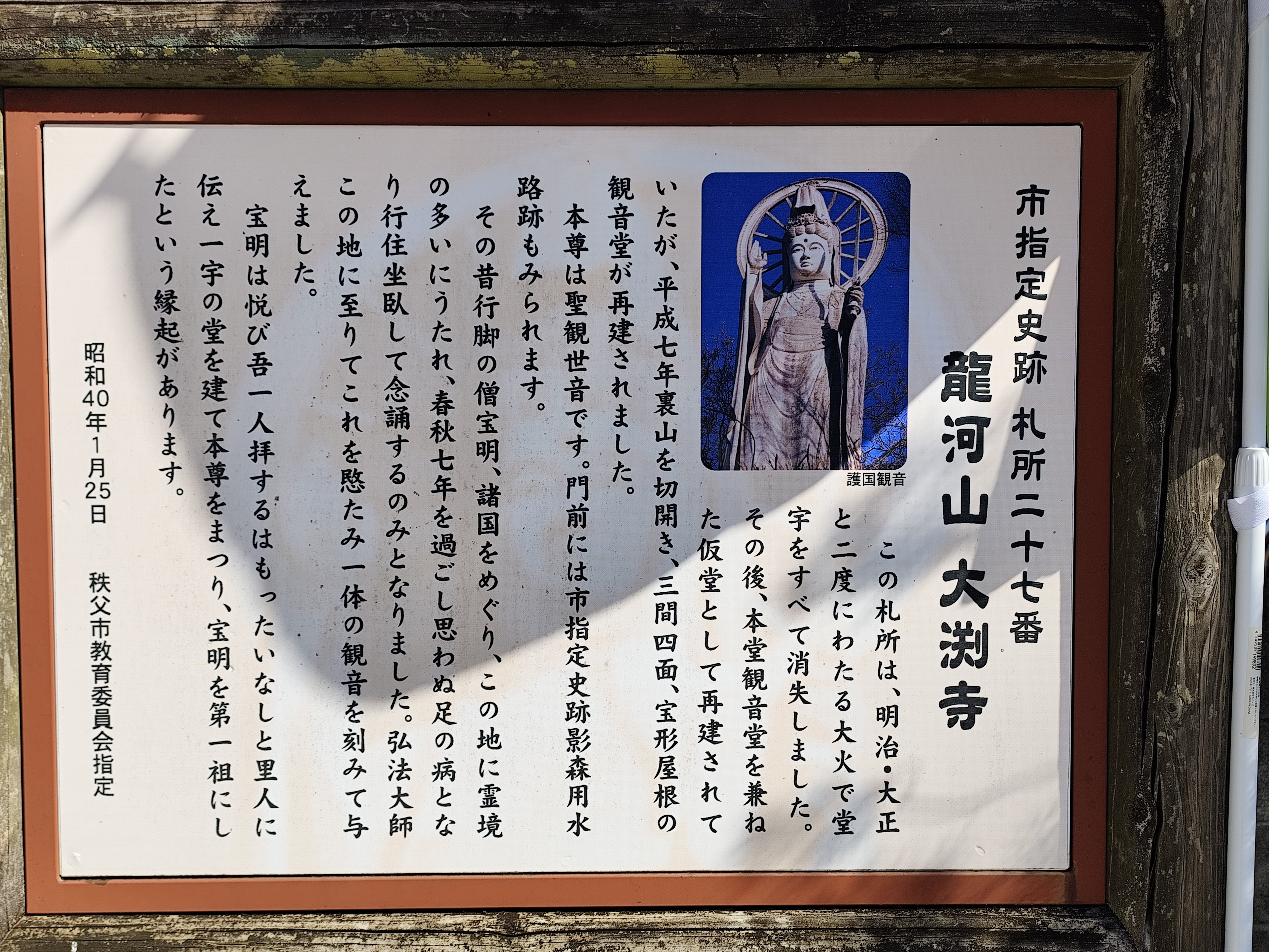 護国観音の建立記念碑。