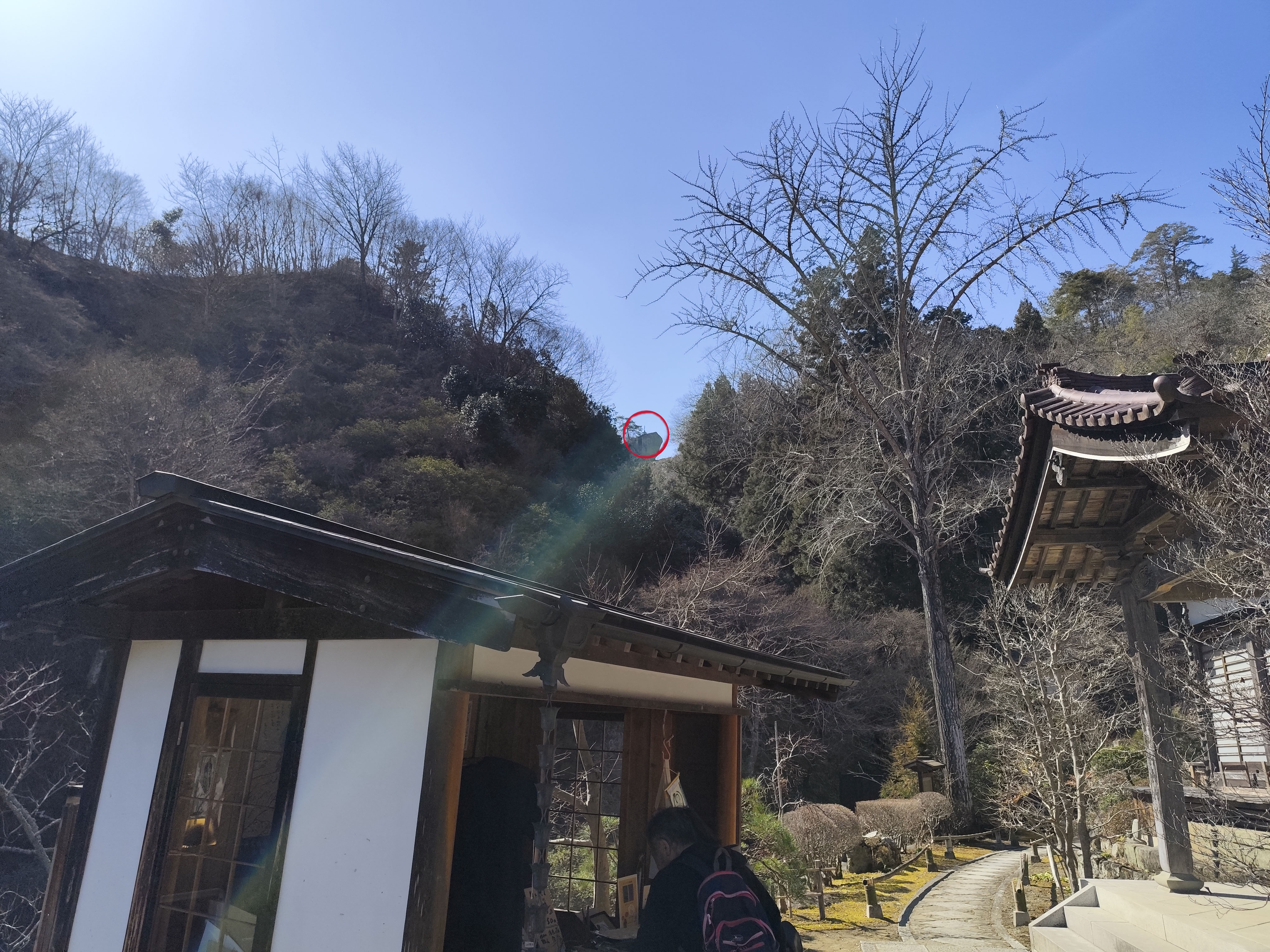 巨岩の前を過ぎると、いよいよ「法性寺」の観音堂だ。