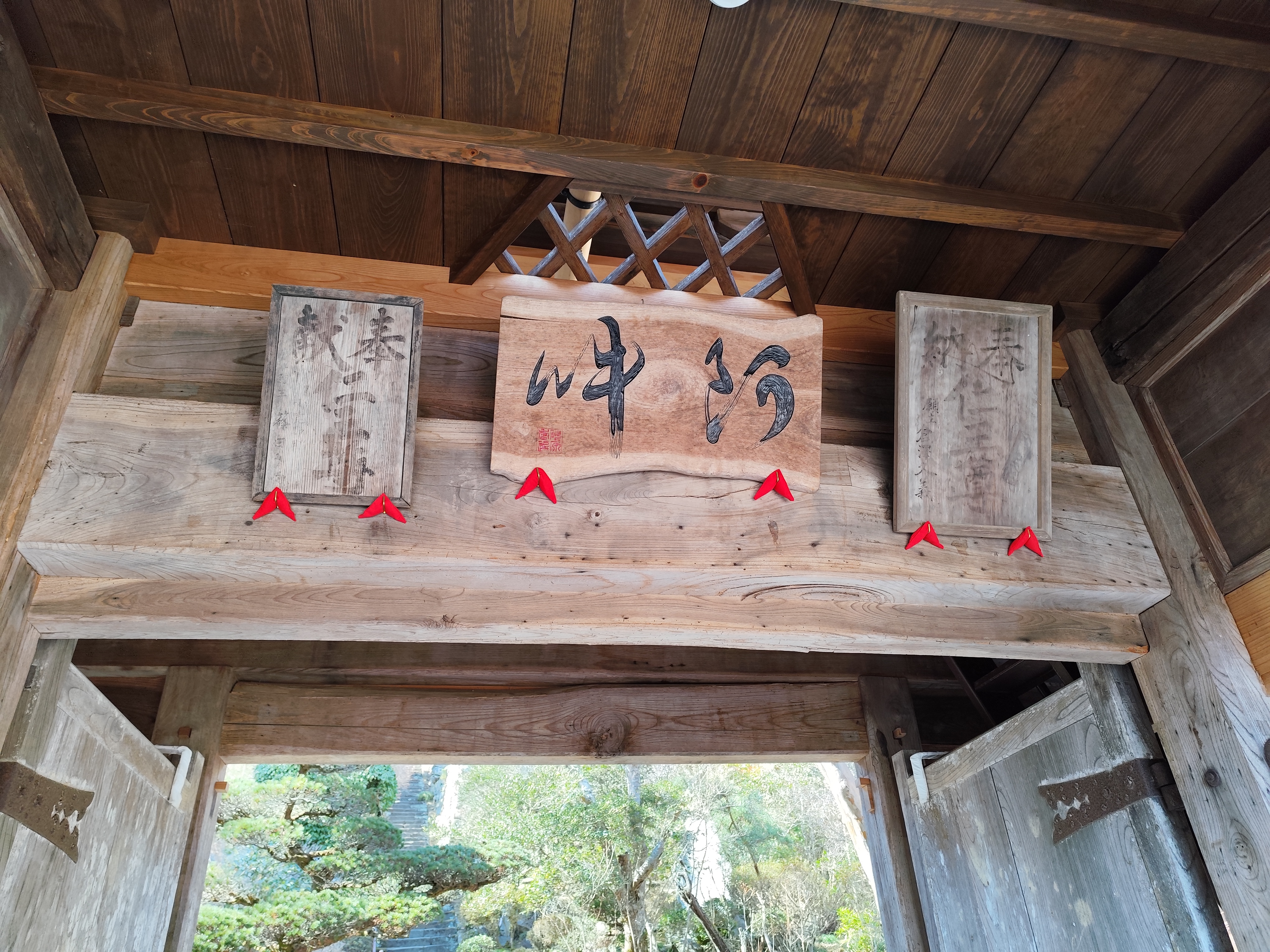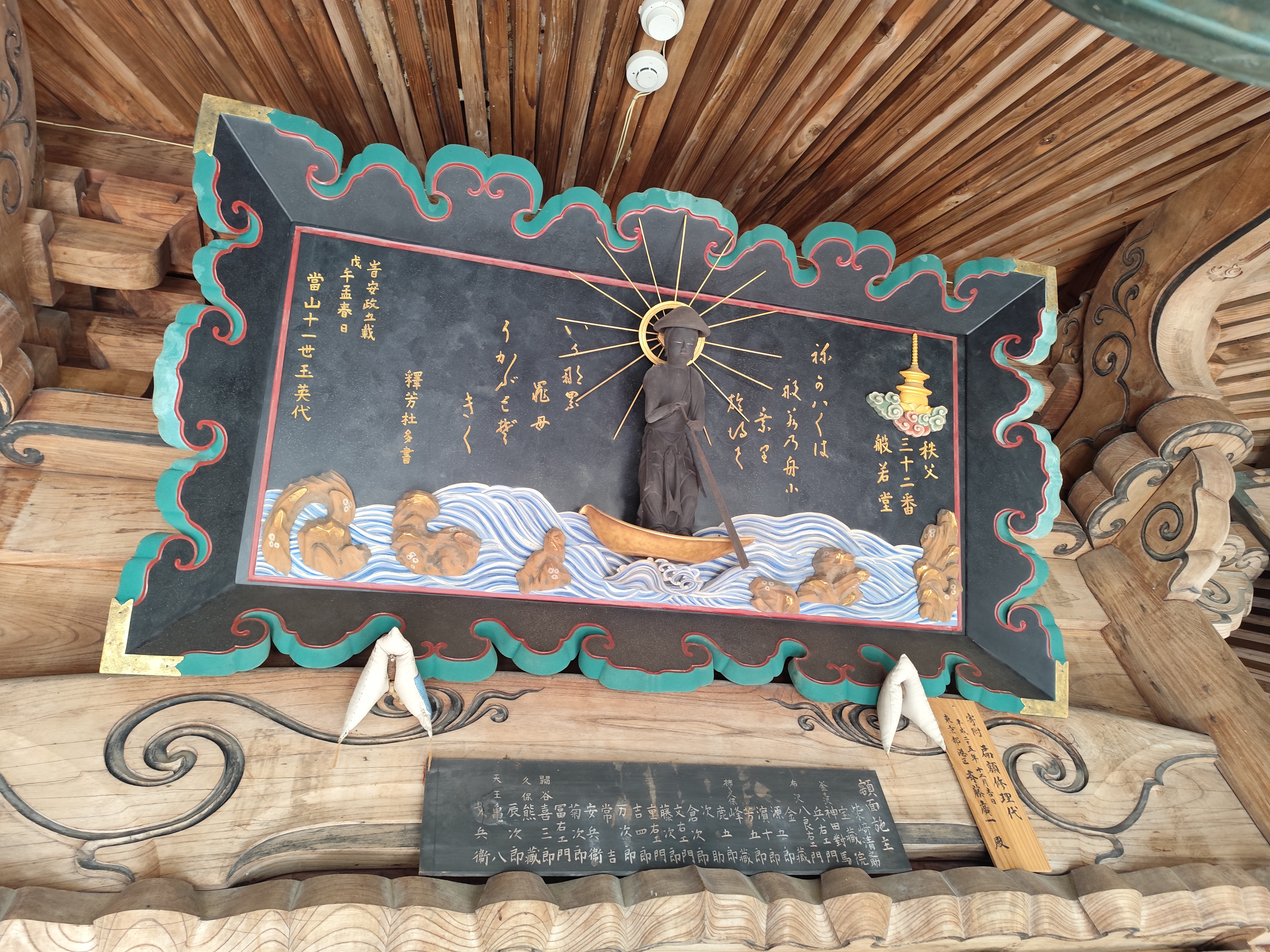 また、建物の正面には「補陀巌」「般若堂」が掲げられ、他にも内陣入り口の欄間には江戸時代の安政5年(1858)に作られた扁額もある。