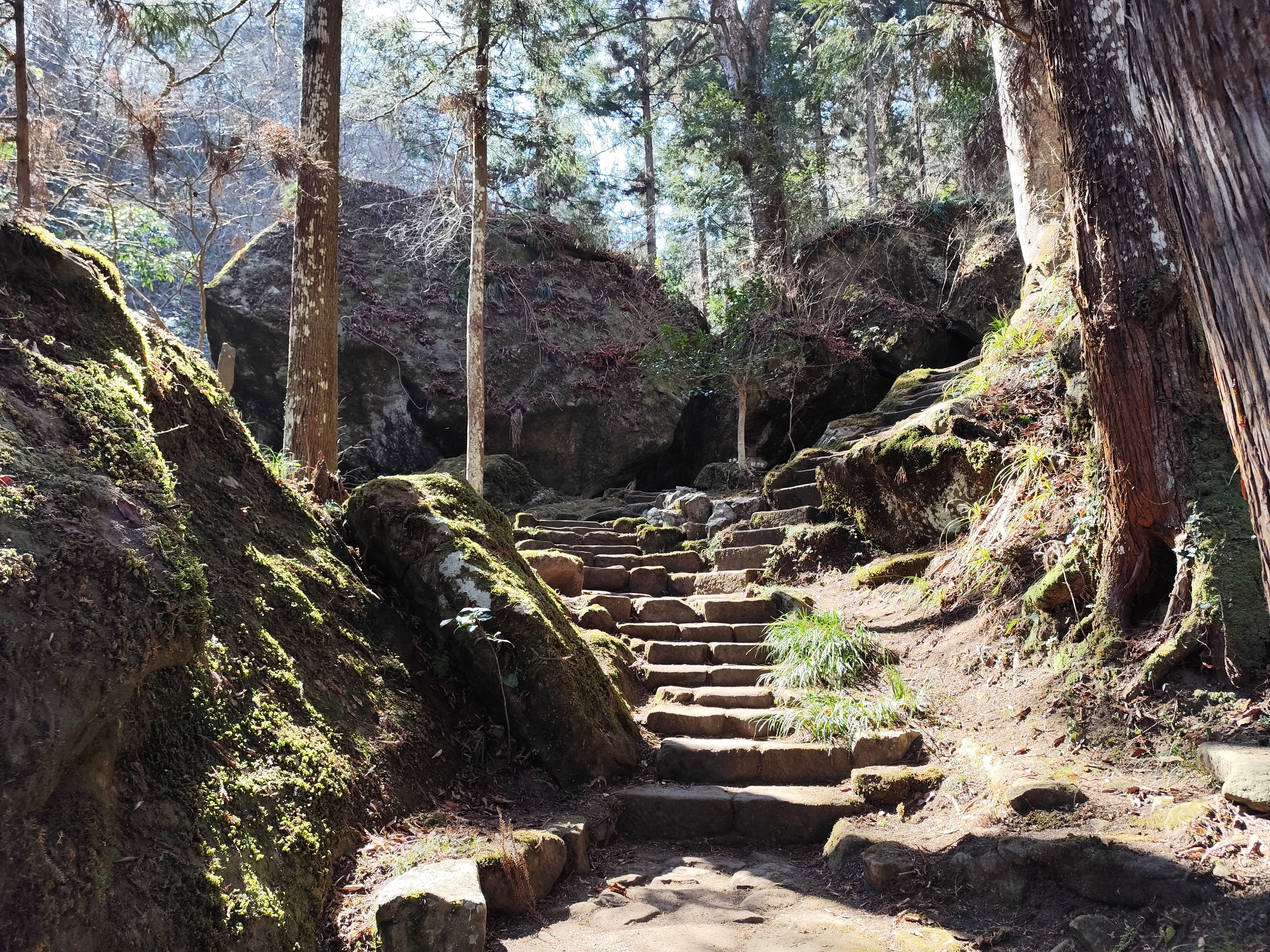ただ、このあたりの石段はかなり狭いうえ、ところどころデコボコしているところもあるので、上り下りの際は足元に注意しよう。