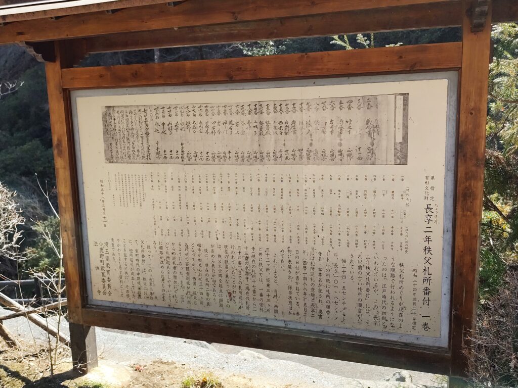 ちなみに、「法性寺」には「長享二年秩父観音札所番付」が現存。こちらは埼玉県の有形文化財に指定されている。