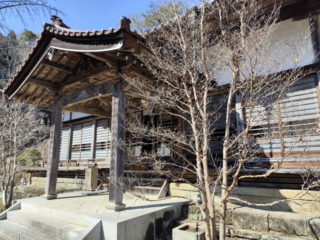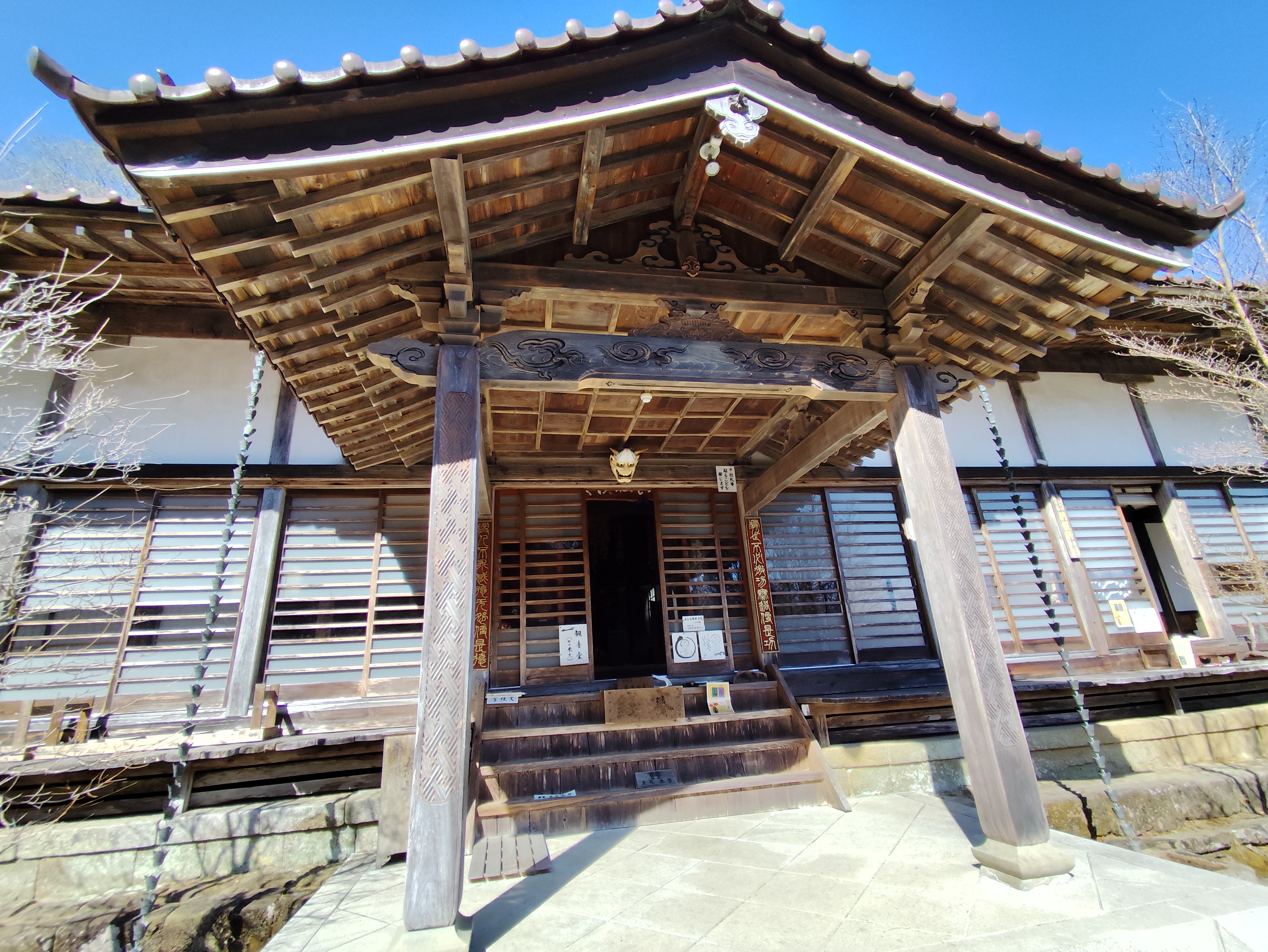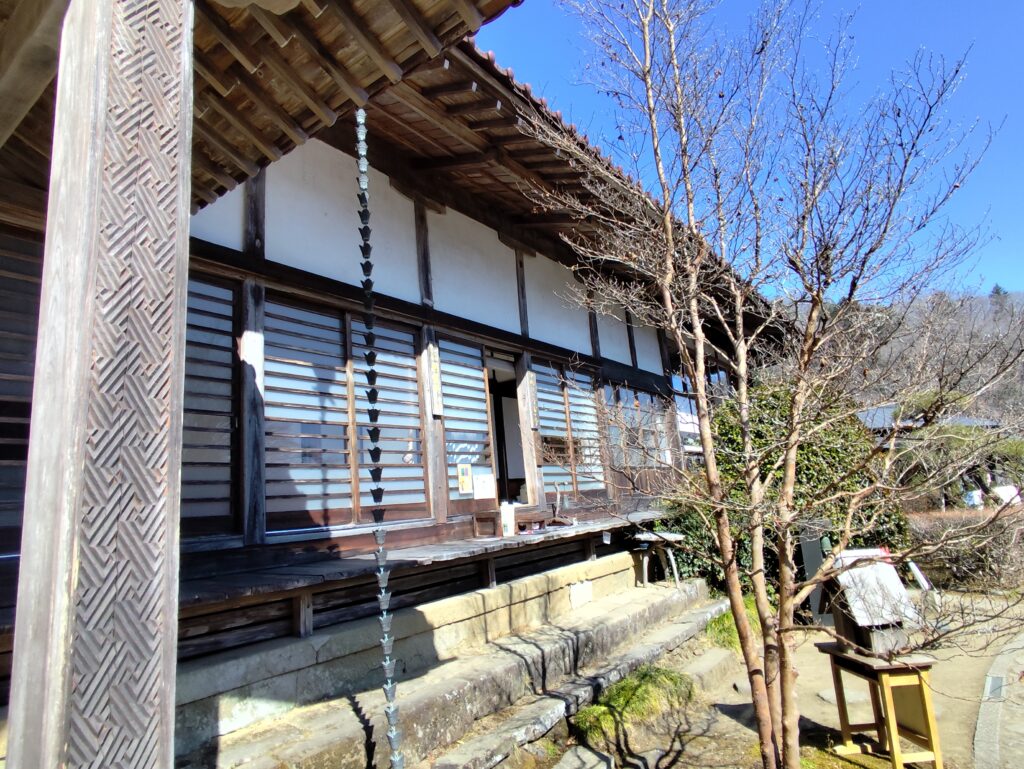 石段の上にある本堂は瓦葺きの入母屋造り。庫裏も作り込みの建物で、間口13間(約23.6m)、奥行き8間(約14.5m)とかなり大きい。